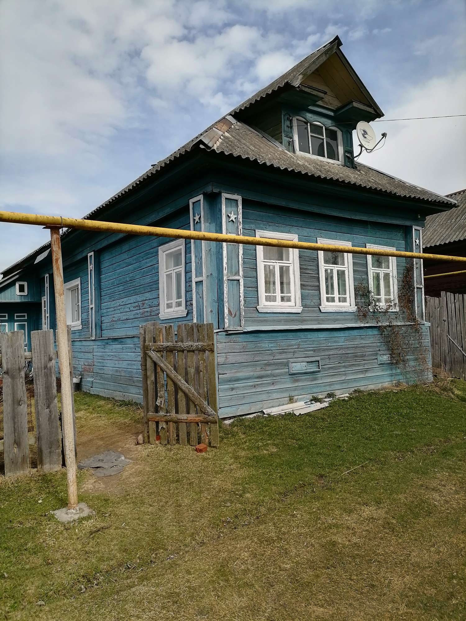 Продам дом бревенчатый пригодный для круглогодичного проживания с газовым отоплением, без удобств. На участке есть кирпичный гараж, баня, колодец и плодово-ягодные насаждения. В селе есть магазин, церковь и ФАП.