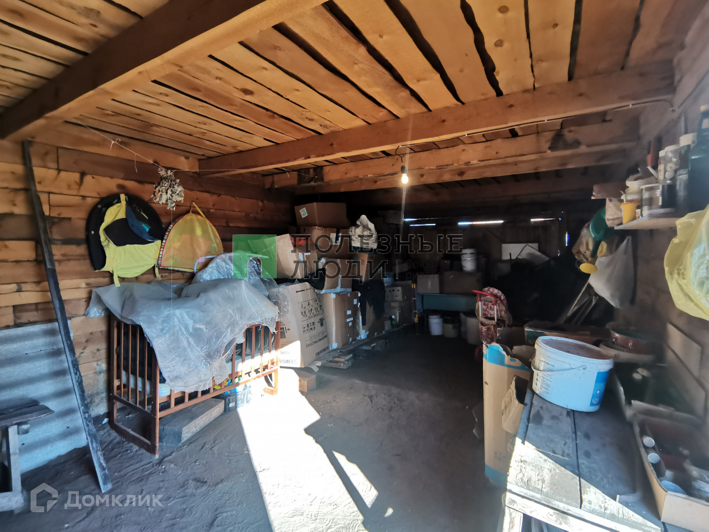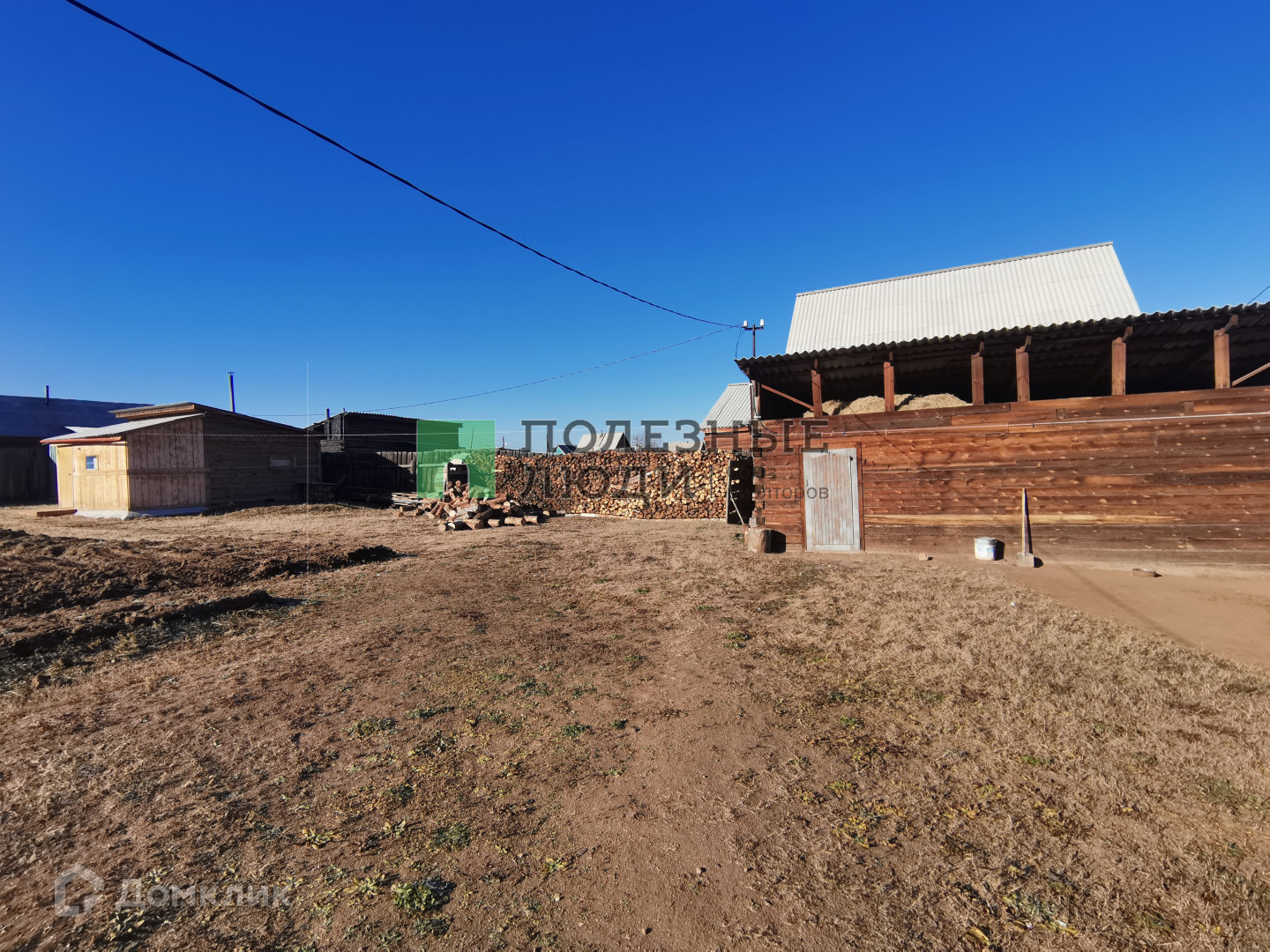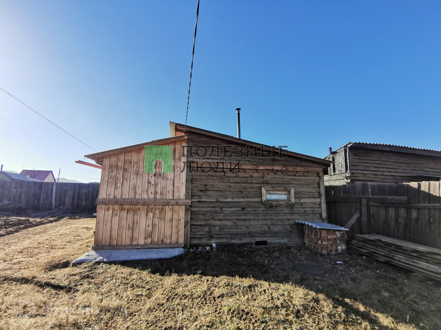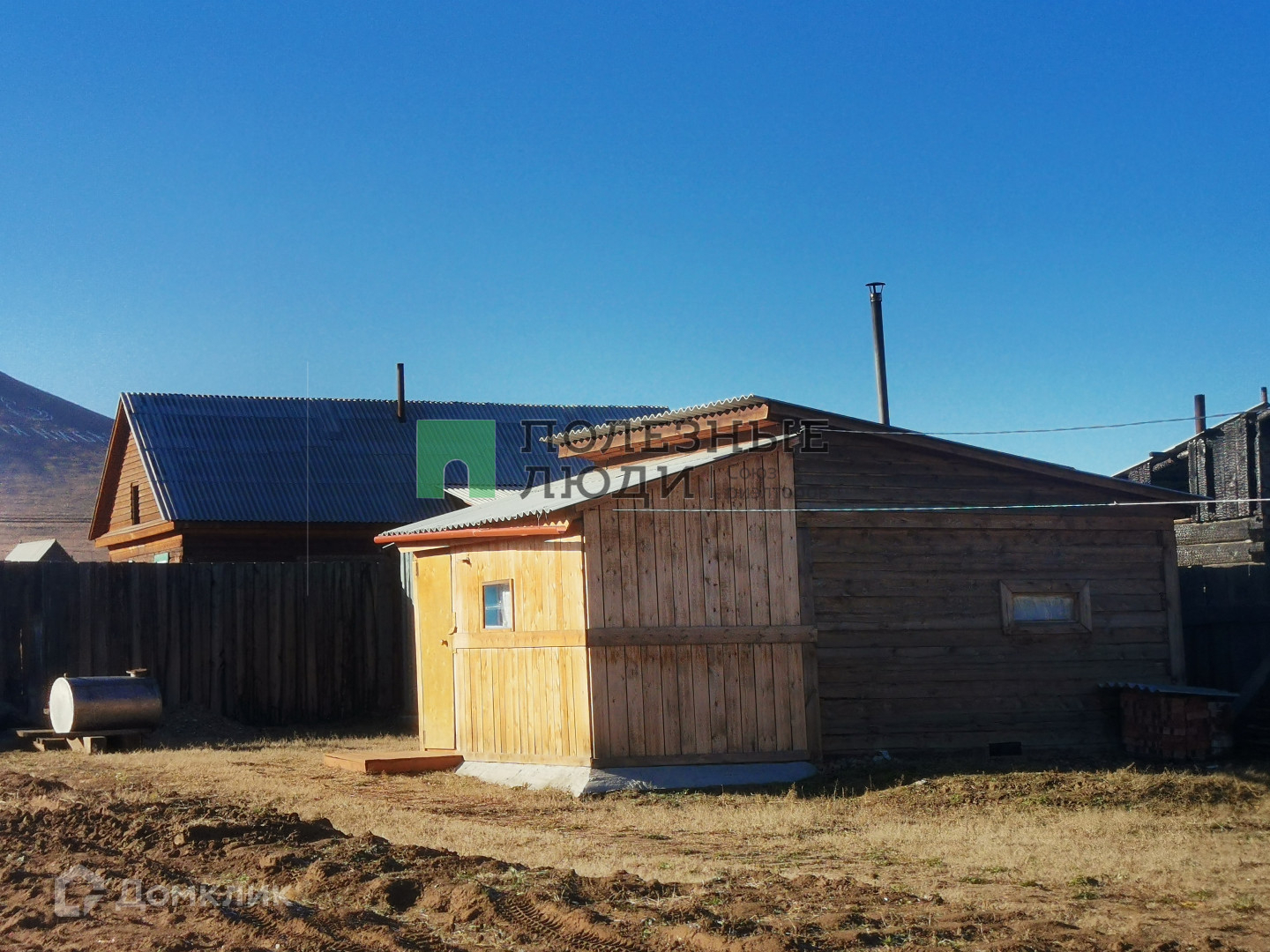 Из построек - баня и гараж. Заезд в гараж с улицы. Постройки так же из бруса.