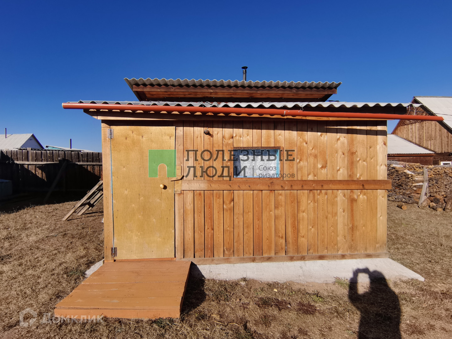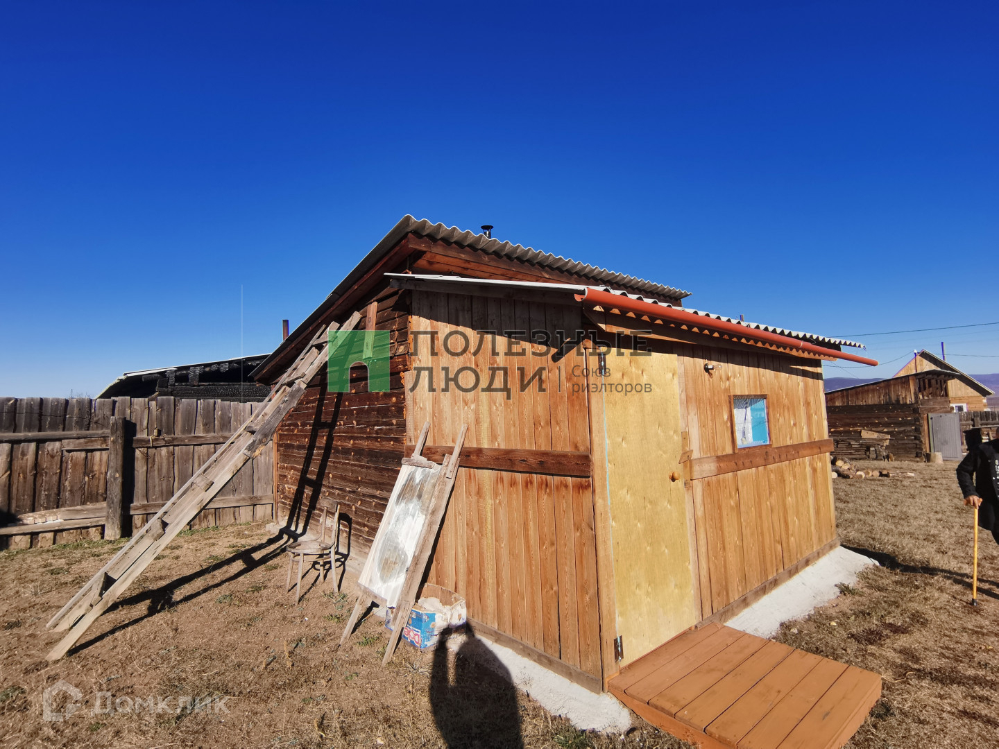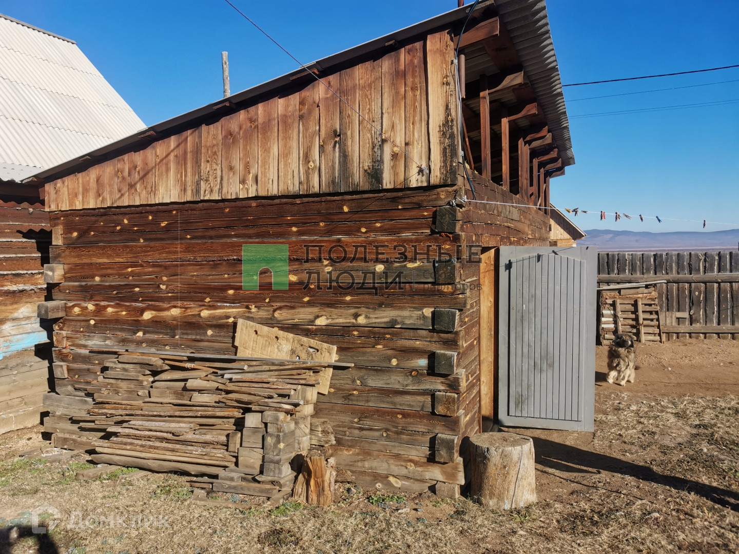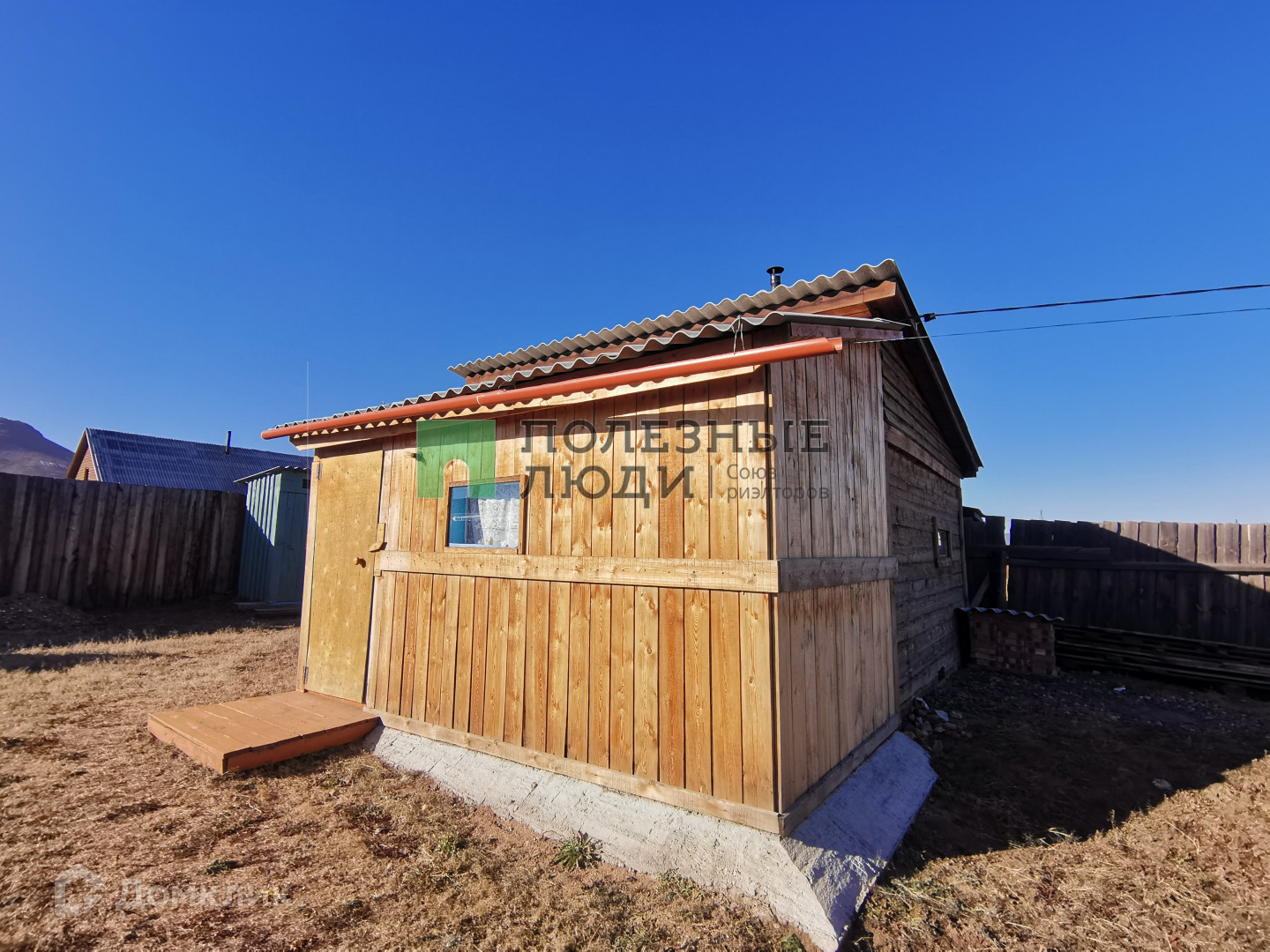 Из построек - баня и гараж. Заезд в гараж с улицы. Постройки так же из бруса.