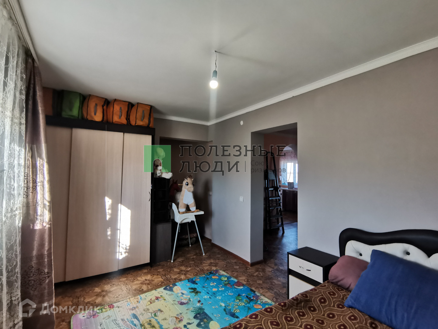Внутри стены и потолок обшиты гипсокартоном. На полу линолеум.