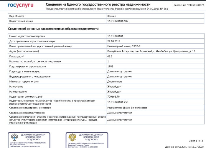 Стоимость недвижимости: