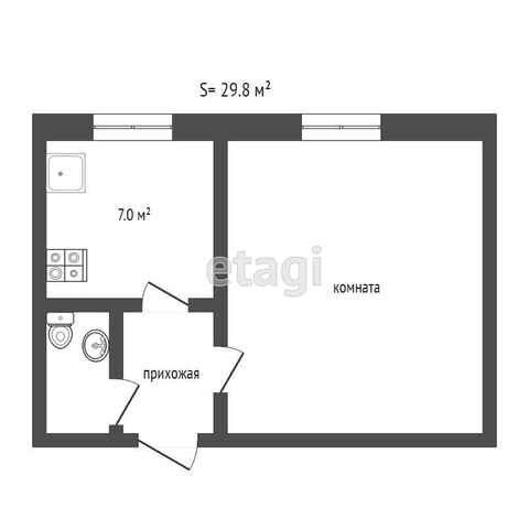 Общая площадь 29.8 м2