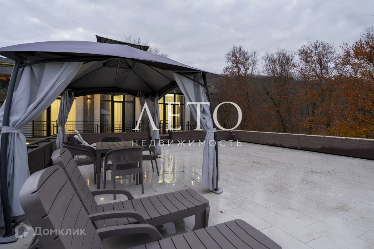 душевая, сан.узел. Установлена мини-кухня с барной стойкой. Лестница с бассейна ведет на эксплуатируемую зону - «спа зону», где установлены шезлонги, шатер со столом и стульями, и прекрасный вид на Сочинскую природу.