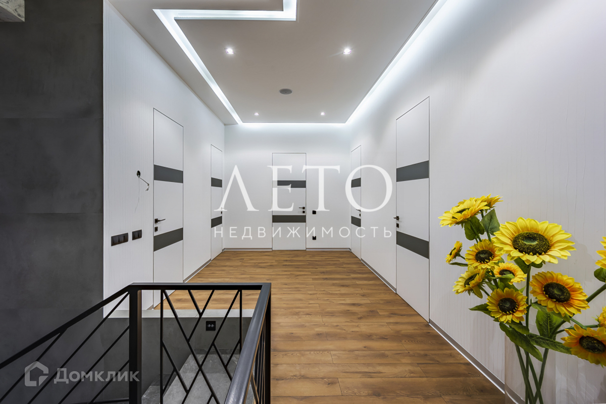 Дом 2 этажа + третий этаж эксплуатируемый. Алюминиевые витражные окна.