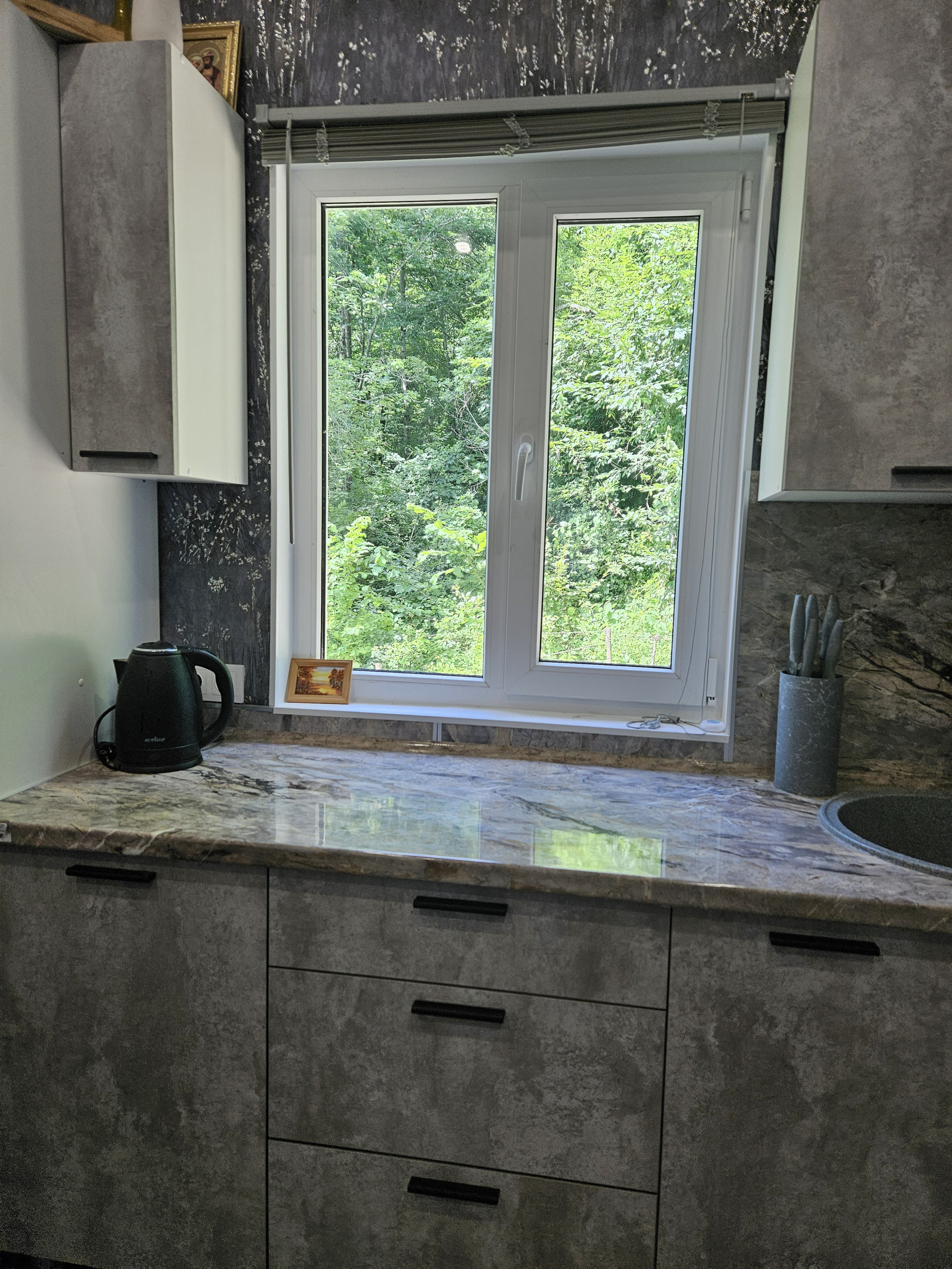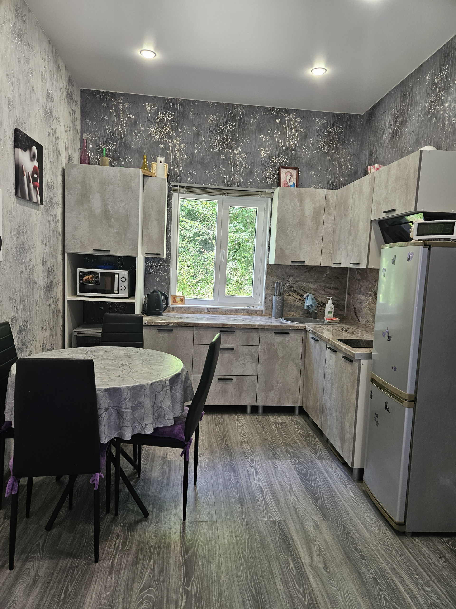 Дом на винтовых сваях, глубина 3 метра. Пластиковые окна, септик, вода из родника, платить не нужно. Электричество без перебоев. В доме инфракрасные полы, экономно и быстро прогревают весь дом. Кондиционер в каждой комнате. Мебель оставим всю по желанию. Если надо, вывезем. Дом оформлен, адрес присвоен. Сейчас прописан один человек, собственник. В доме осталось сделать балкон. Ландшафтом не занимались, участок со склоном 30%. В доме всё новое, свежее, живём год. Переехали в Крым, дом продаем. Остановка и магазин - 900 метров.