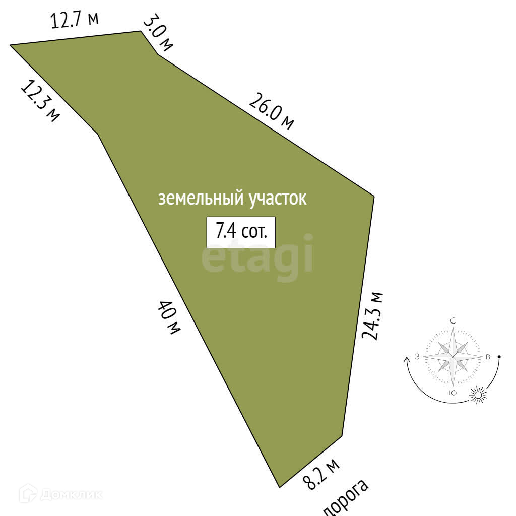 Площадь участка 7.4 сот.