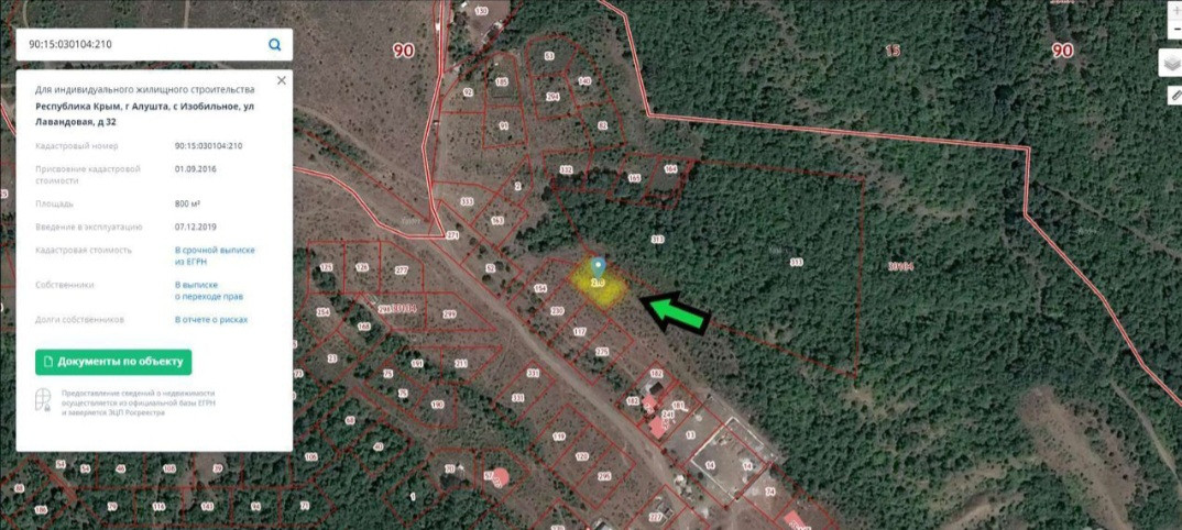 Кадастровый номер участка: 90:15:030104:210 Республика Крым,г.Алушта,с.Изобильное,ул.Лавандовая,д.32.