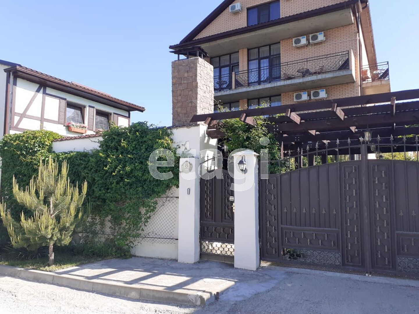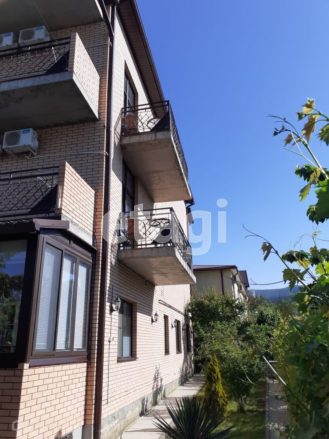 в самом центре курорта. Балконы шириной 140 см. В наличии сарай и ОВИ(объект вспомогательного использования)- 2 этажа(жилье горничной 1 эт и гостевая кухня-2 этаж).Построено все по ГОСТу- все материалы с запасом прочности с расчетом по сейсмике 9 баллов.