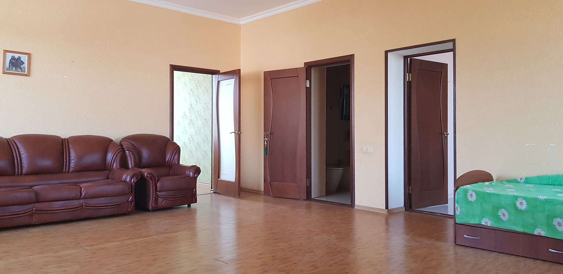 Все спальни, не зависимо на каком этаже, с выходом на балкон, где всегда можно насладиться чистейшим воздухом, утренним ли или на закате.