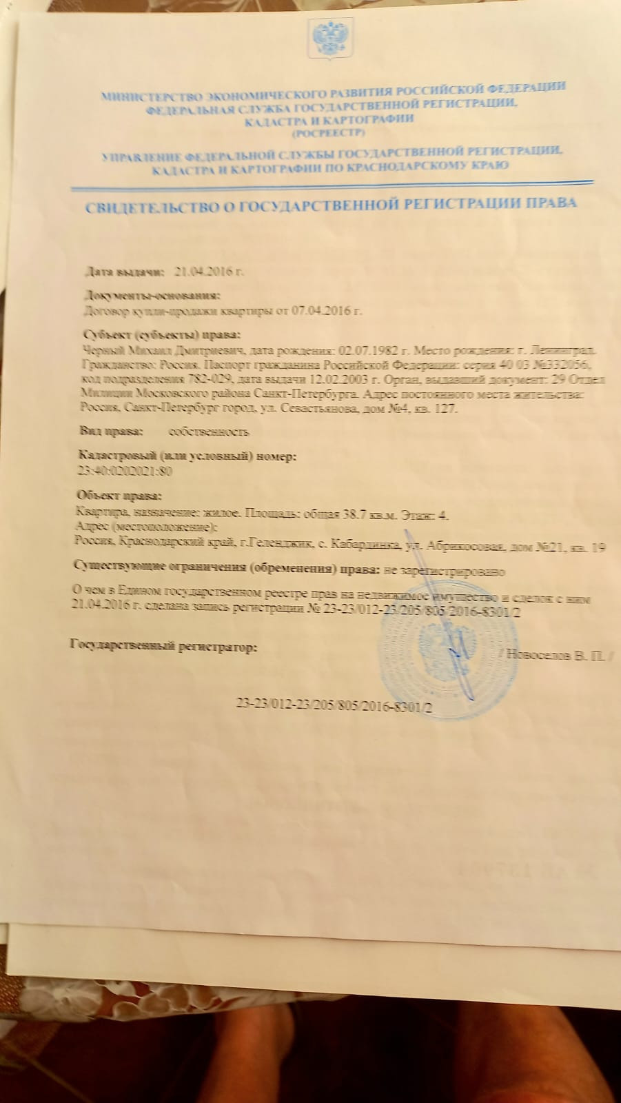 1-комнатная квартира, 38.9 м2, этаж 4 / 6, на продажу в селе Кабардинка, Ореховая улица, 2