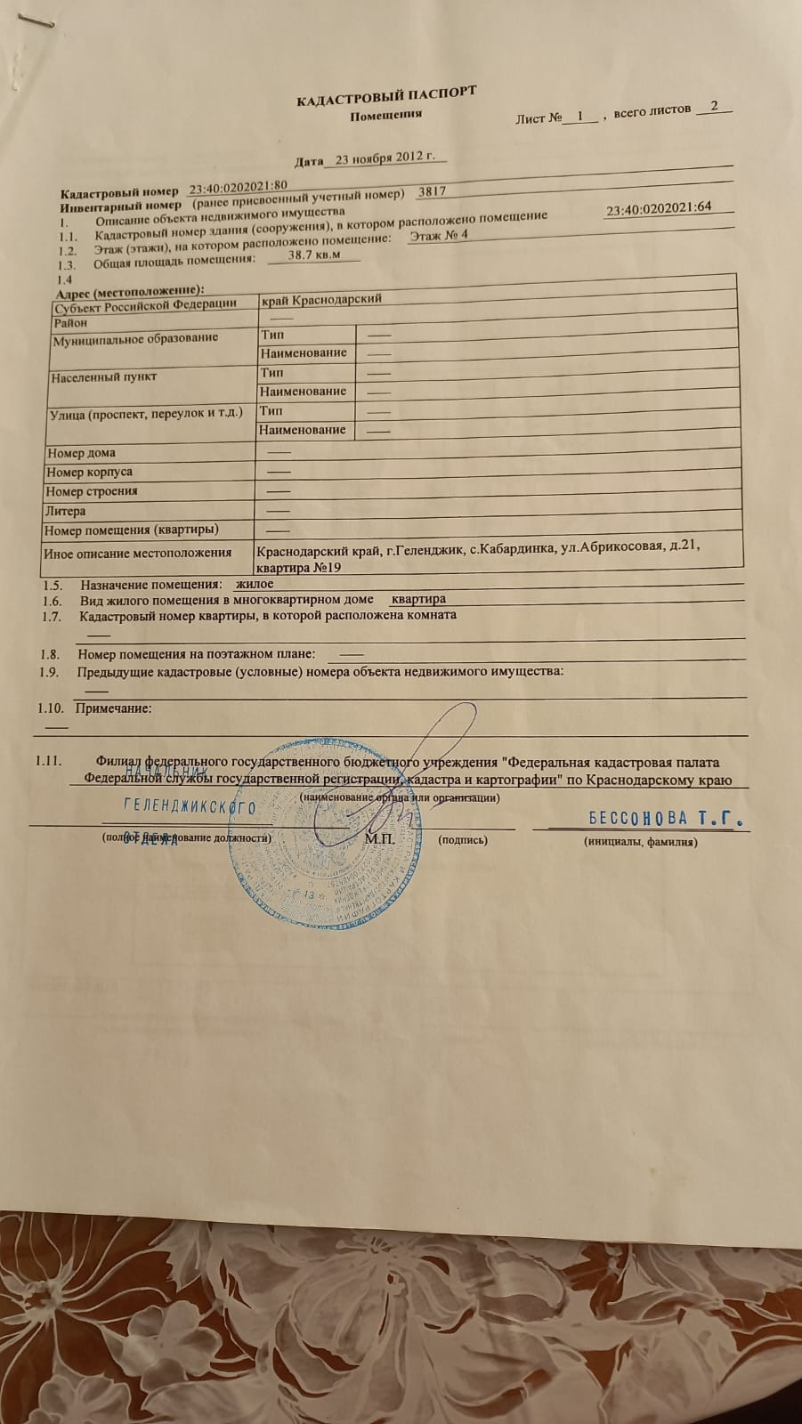 Общая площадь 38.9 м2