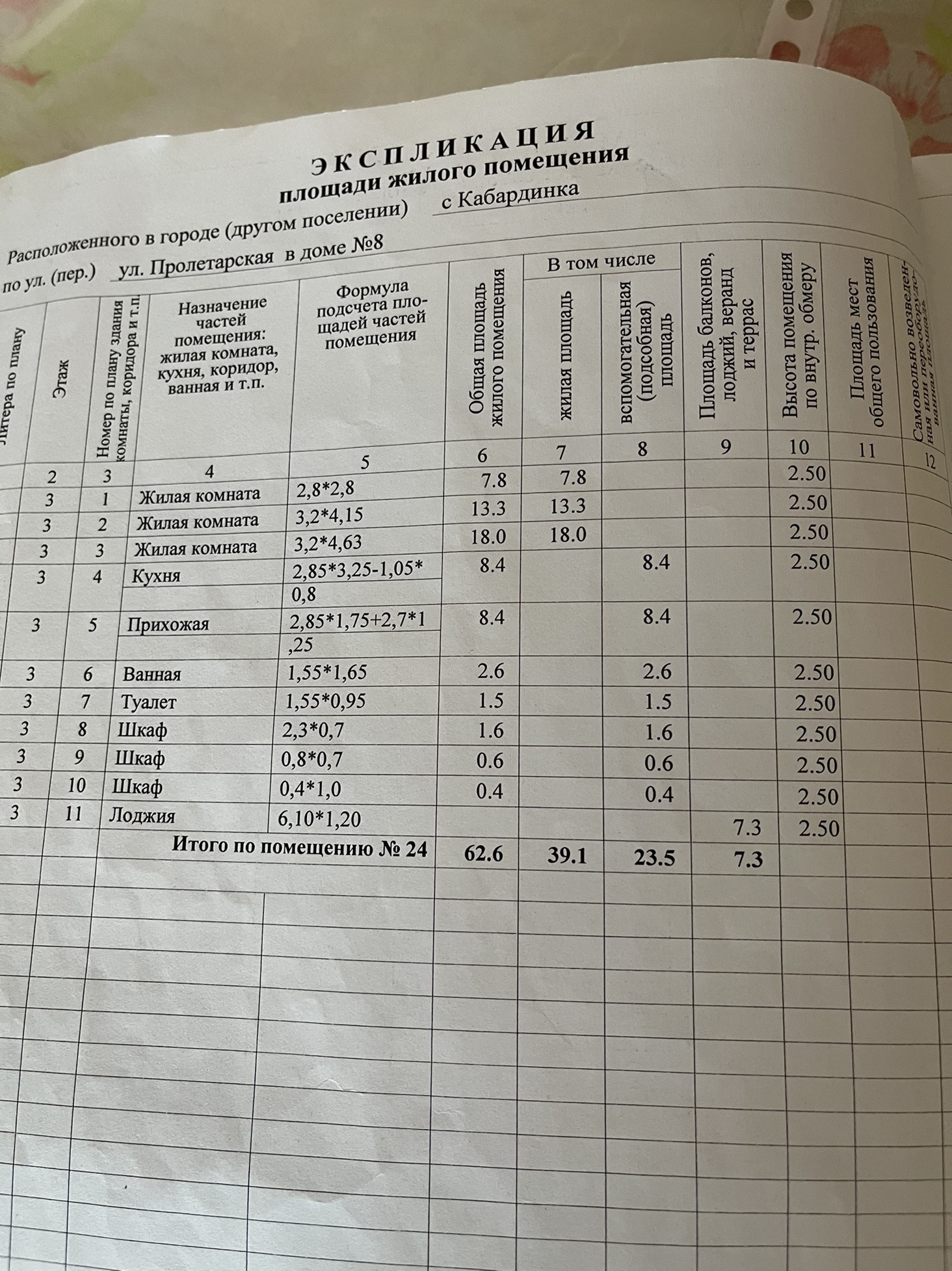 Общая площадь 62.6 м2