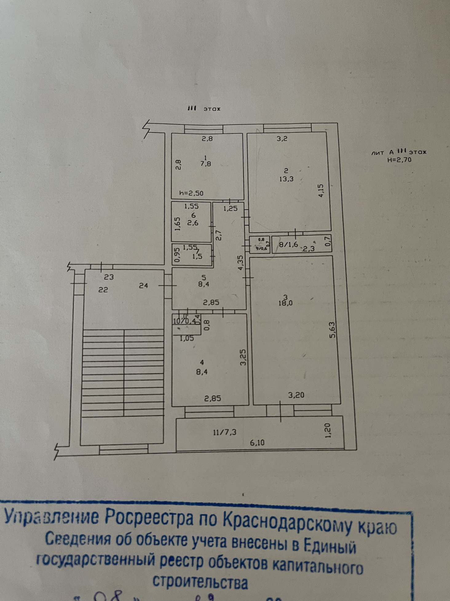 Высота потолков 2.7 м