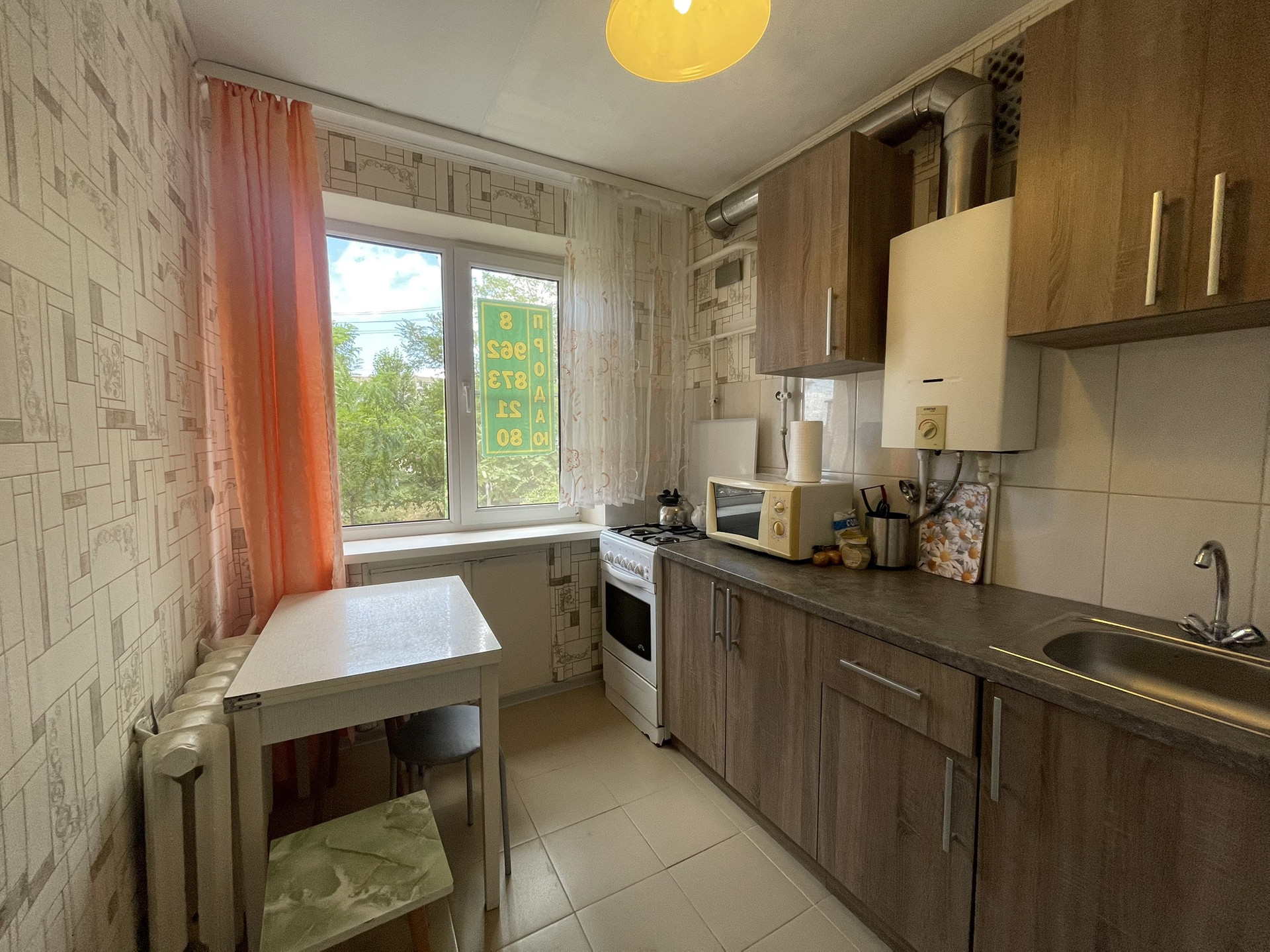 Из кухни и комнаты вид на зеленый двор.