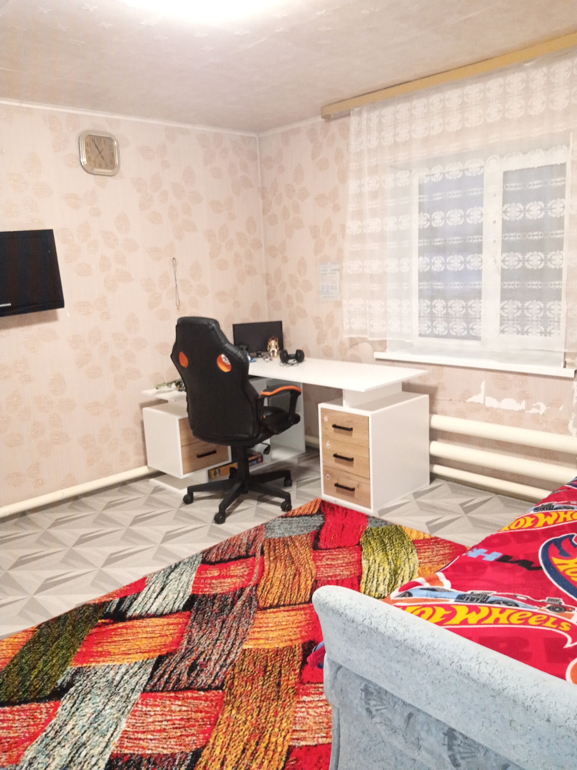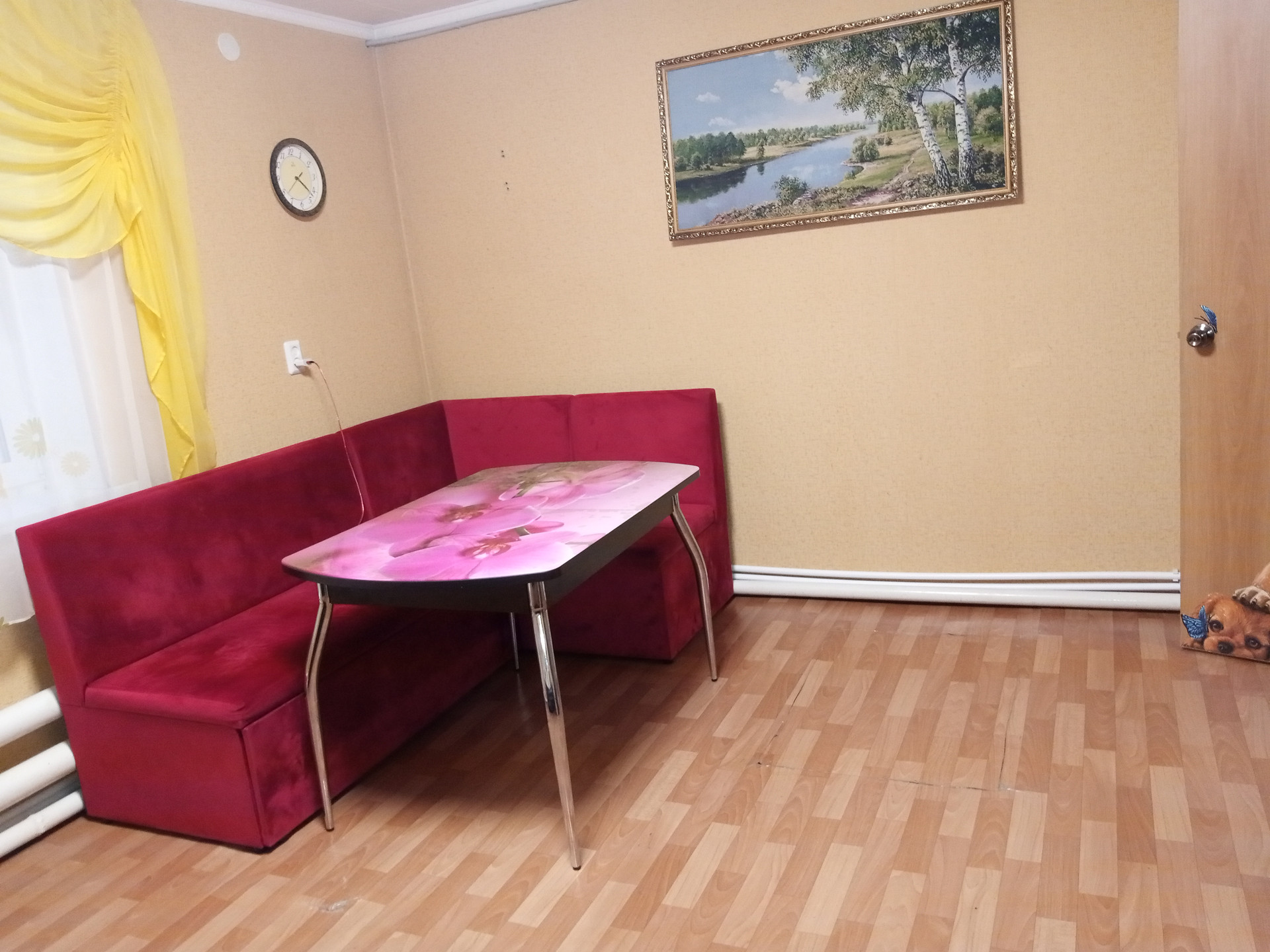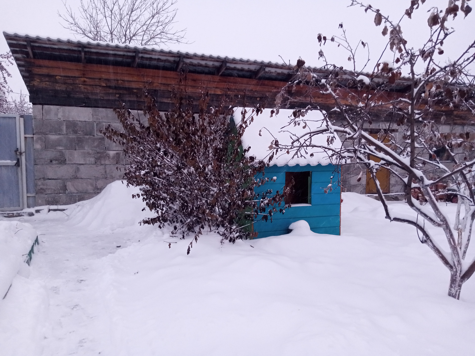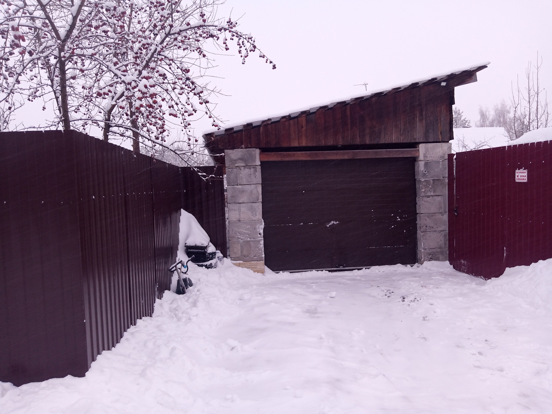 На участке находится гараж, дровенник, уличный туалет со светом, разеткой и отделкой внутри, баня дровяная, домик для детей для игр, большой вальер для собаки с будкой внутри, теплица, цветы, смородина, крыжовник, несколько грядок, зеленая поляна на которой находятся яблоня( яблочки вкусные) , груша ( очень вкусные груши), слива ( вкусная).