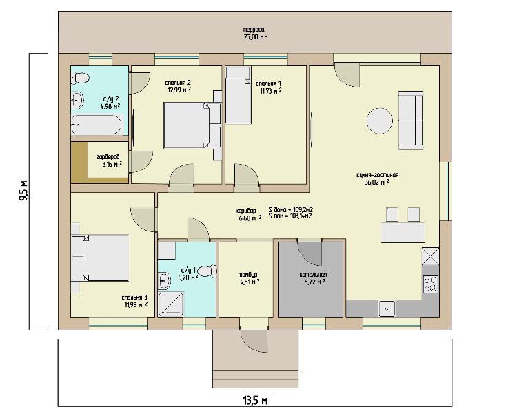 Общая площадь 110 м2