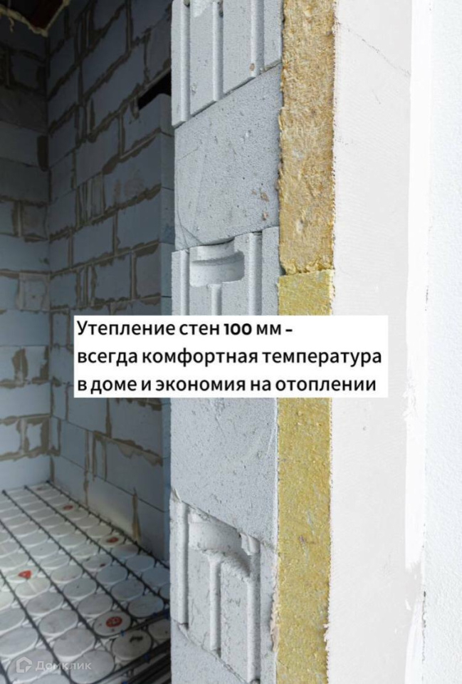 Фундамент: буронабивные сваи, ростверк, каркас связан из металлической арматуры, плита, Стены: газоблок 300мм "Теплит", Отопление (теплый пол) и водоснабжение разведено и подключено, Кровля: армопояс, стропильная система обработана огнебиозащитой, утеплитель 200 мм эковата, металлочерепица.