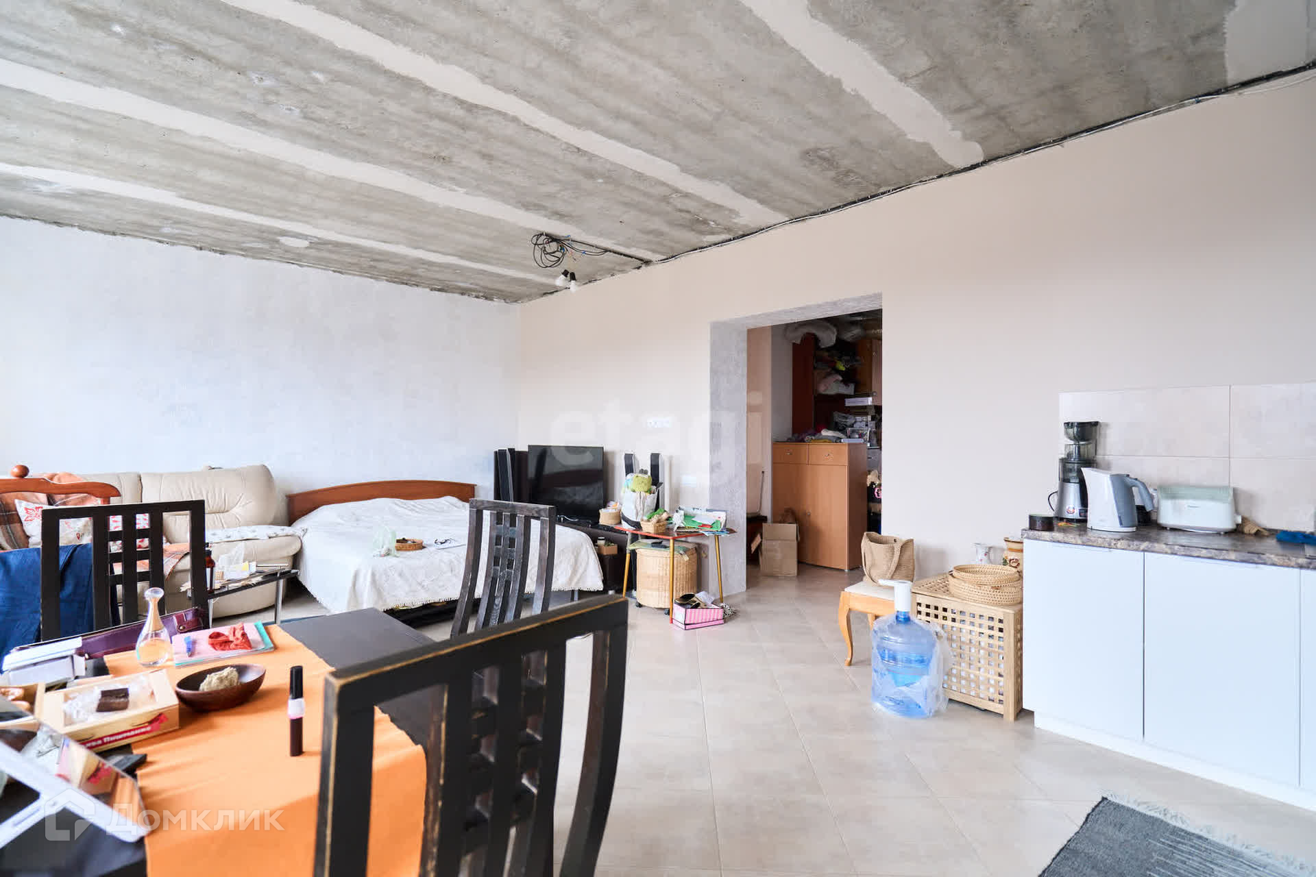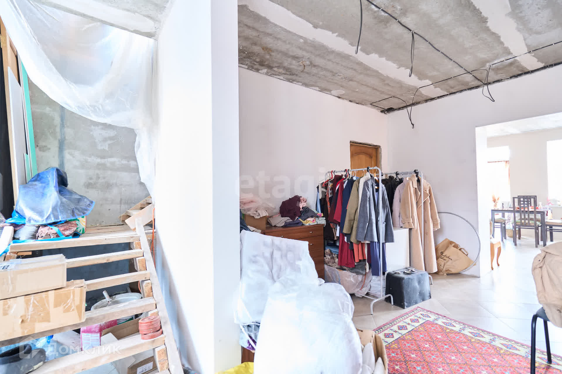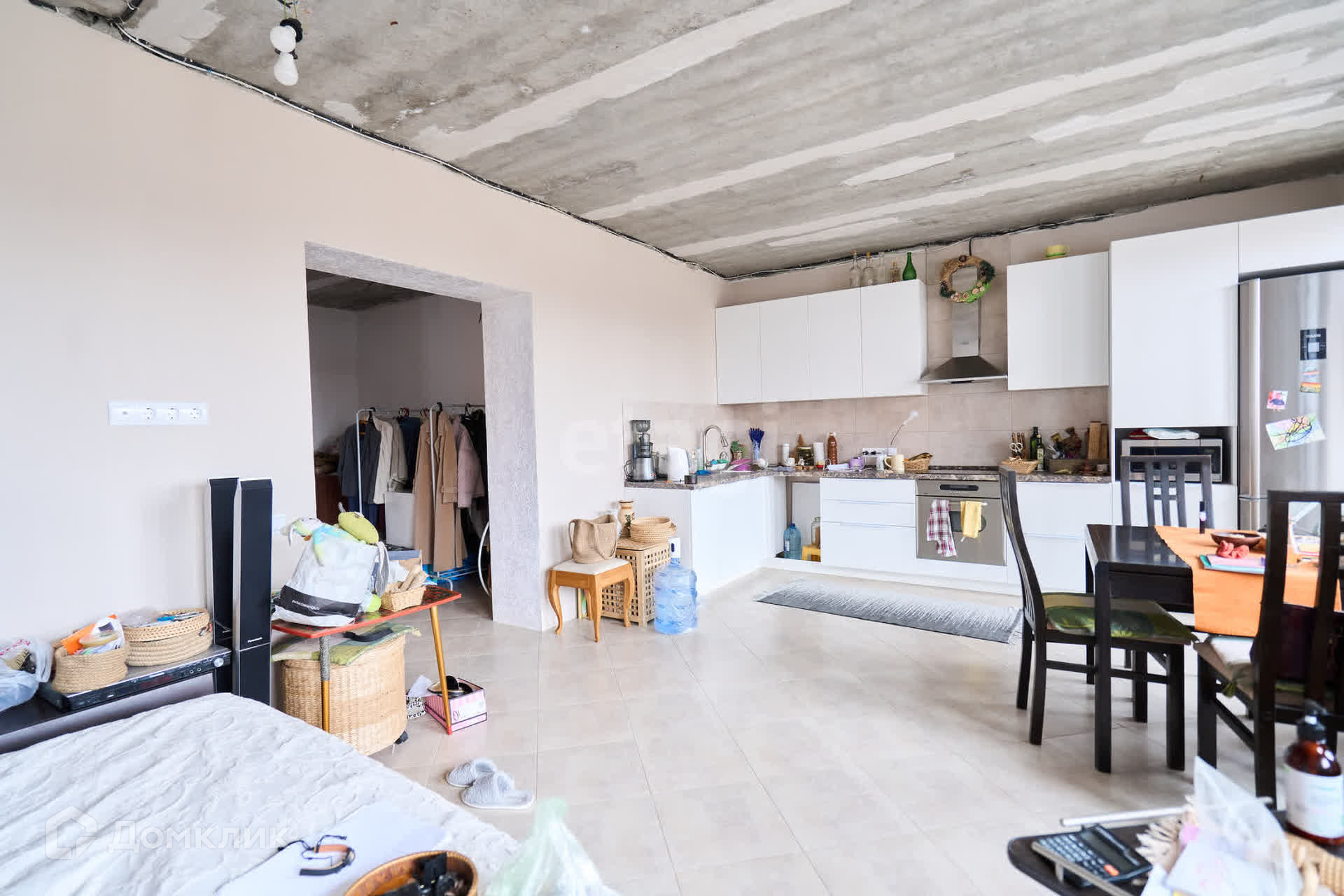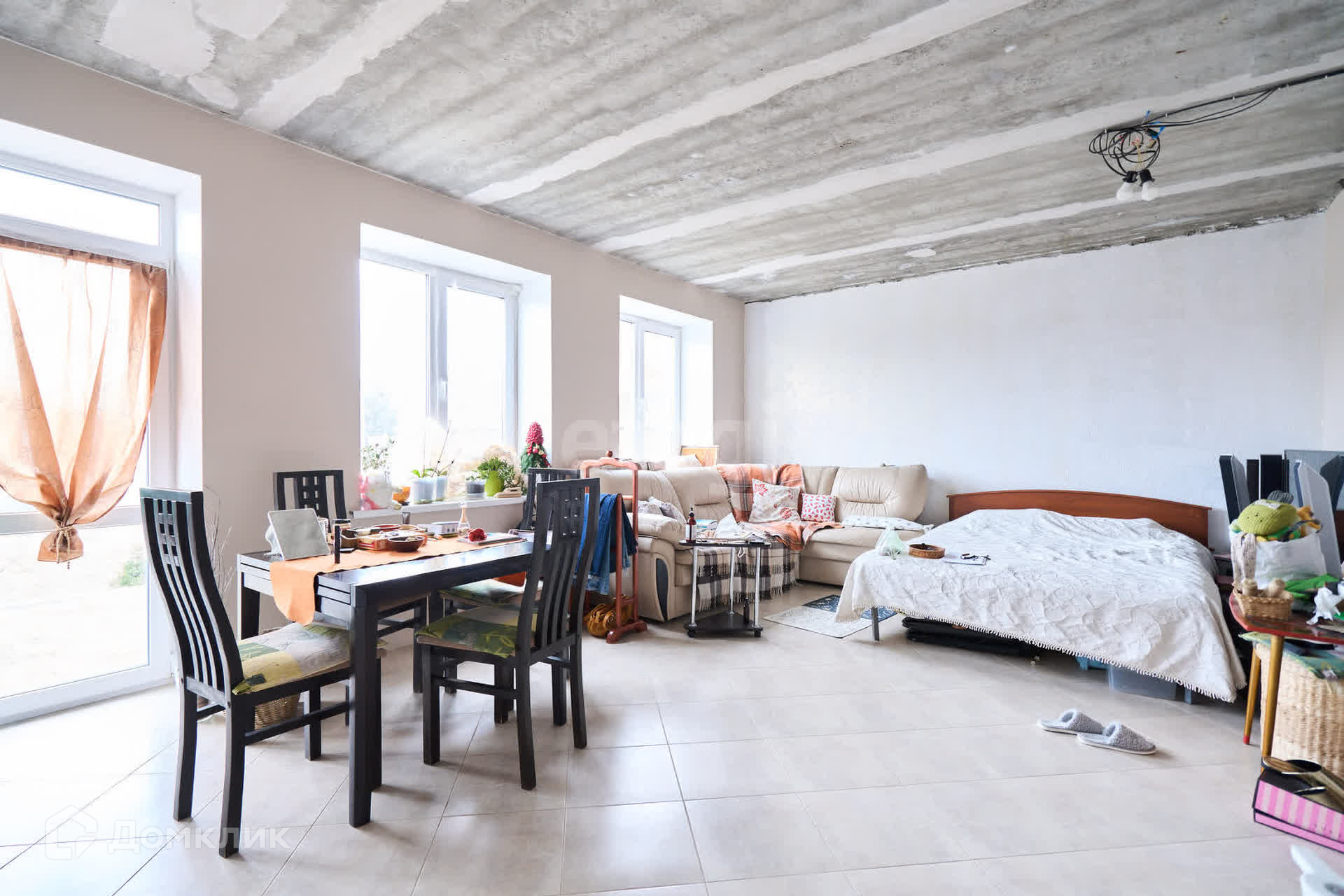 Первый этаж полностью жилой. Можно комфортно жить и дальше заниматься ремонтом. В первом этаже студия - кухня+ гостиная, холл, просторный, оборудованый санузел. Пол во всём этаже выложен плиткой. Стены в студии тщательно выровнены+ обои + декоративная штукатурка. В студии новый кухонный гарнитур.