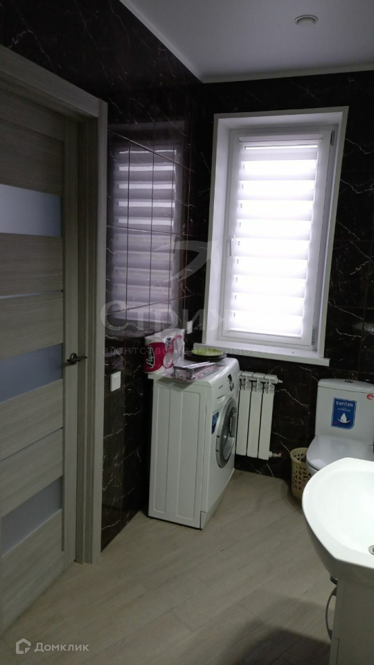 Внутри есть хороший, современный ремонт. Обои, натяжной потолок, на полу керамогранит. Зимой при среднем отоплении около 20-21 градусов. Также есть кладовая небольшая, закрыта зеркальными дверями, коридор, туалет с душем, бойлерная и на входе не большой застекленный тамбур для теплоразрыва. Пристроен к дому навес для защиты от схода снега зимой.