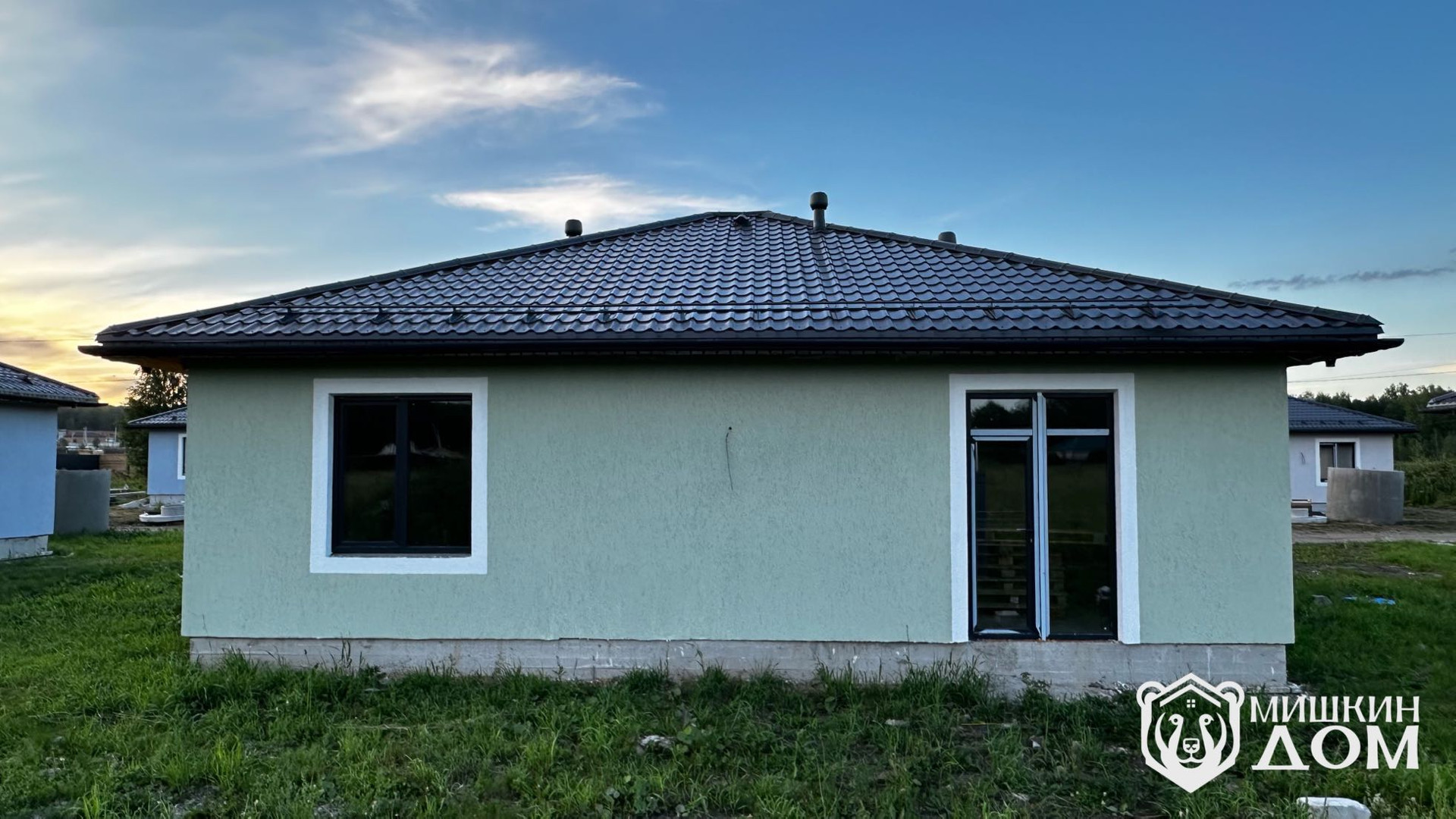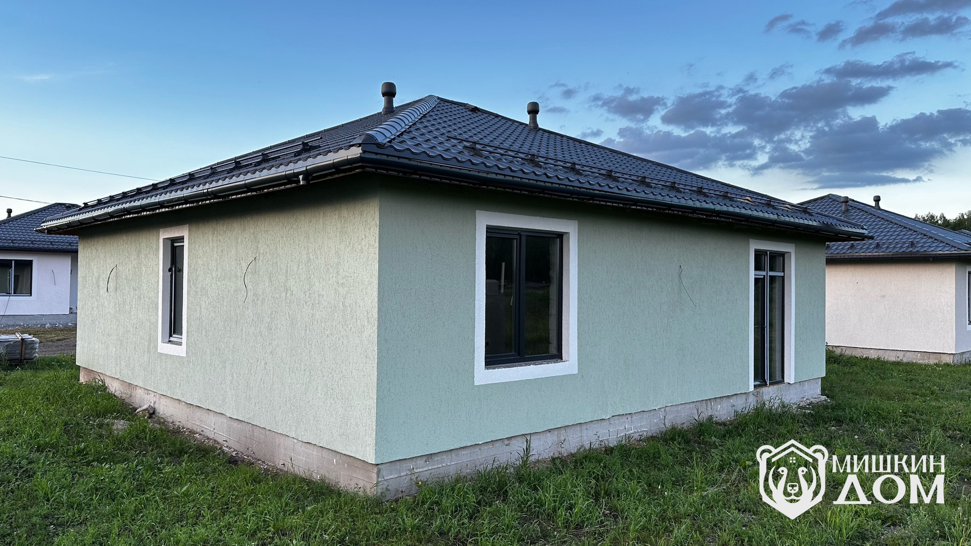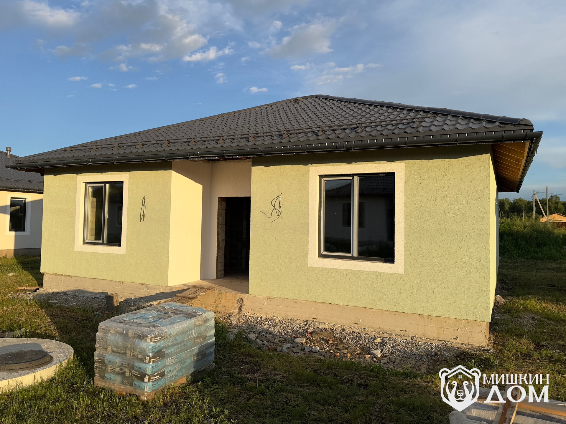 • По периметру дома будет выполнена отмостка и входная группа тротуарной плиткой «Старый город» от Челябинского завода «Урал Камень», Запланирован монтаж забора по периметру и дорогой лицевой зоной в стиле «жалюзи» горизонтальные ламели в тёмно-графитовом цвете согласно проекта. Будет выполнена планировка участка.
