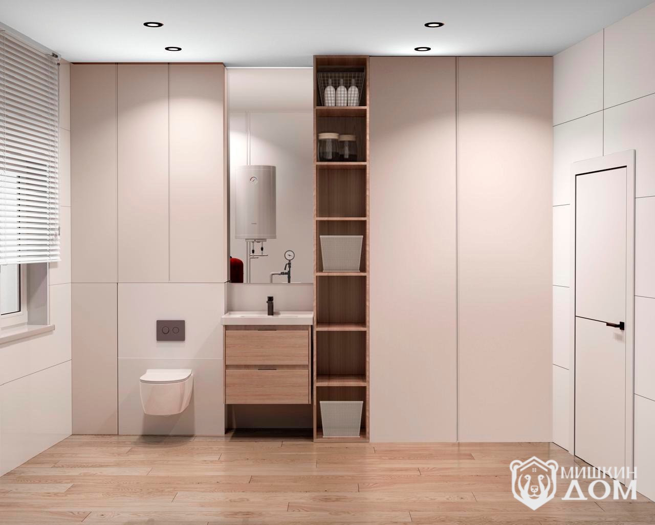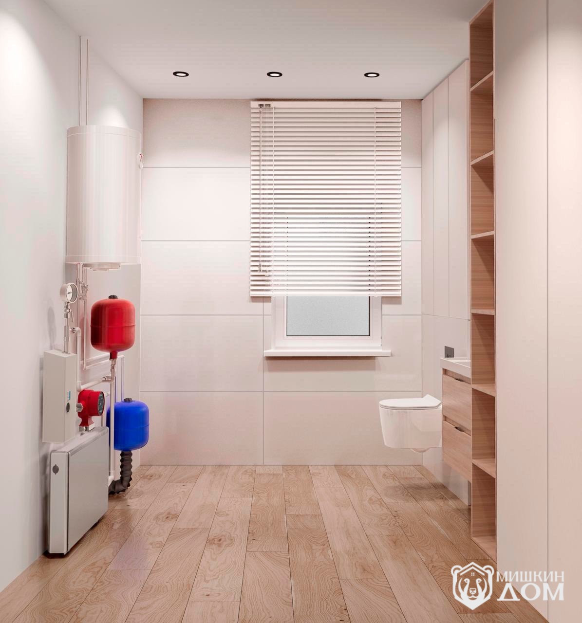 • санузел большой, совмещенный с котельной и инструментальной зоной (мы подумали, где хранить всё нужные вещи и инструмент);