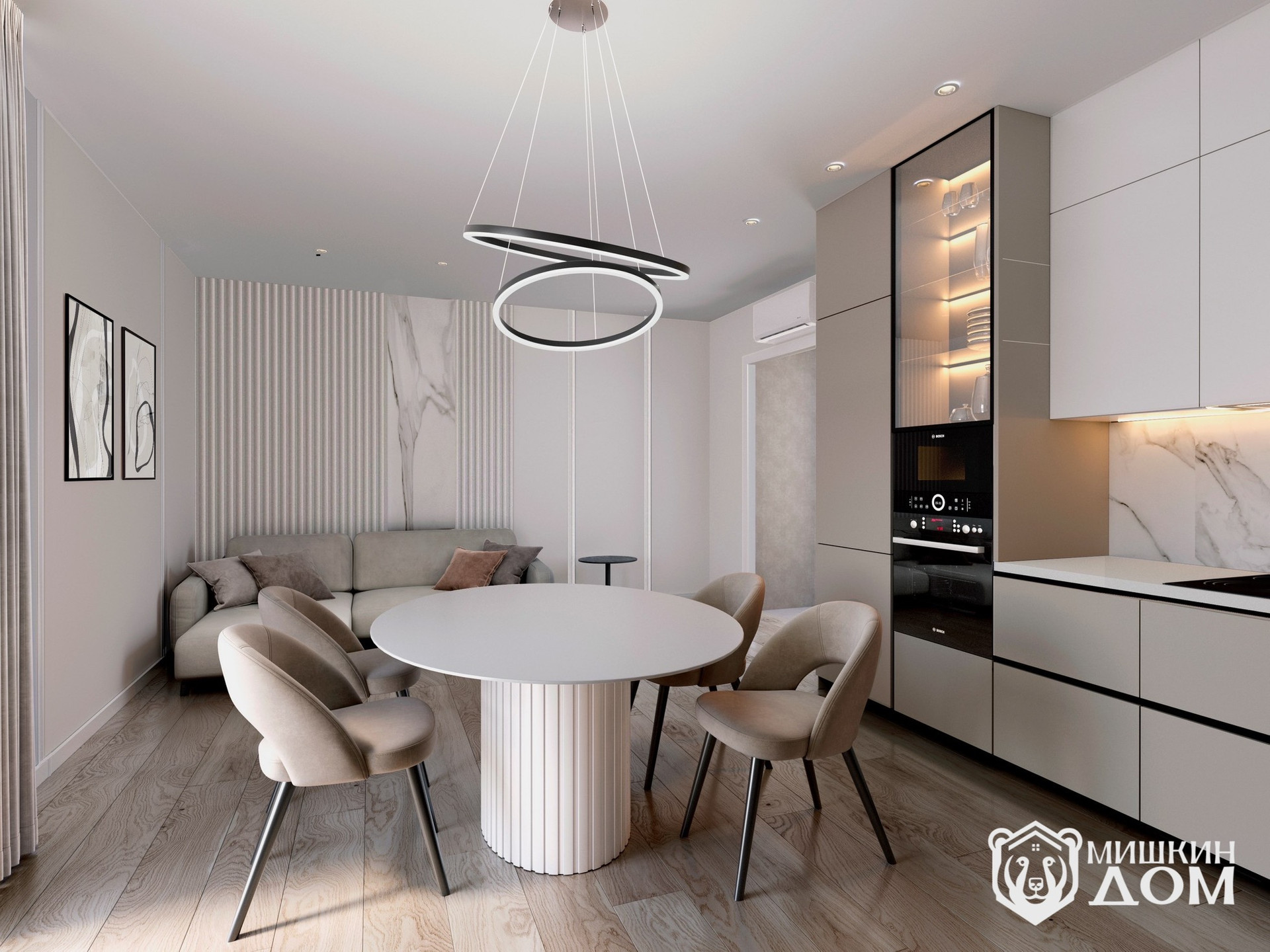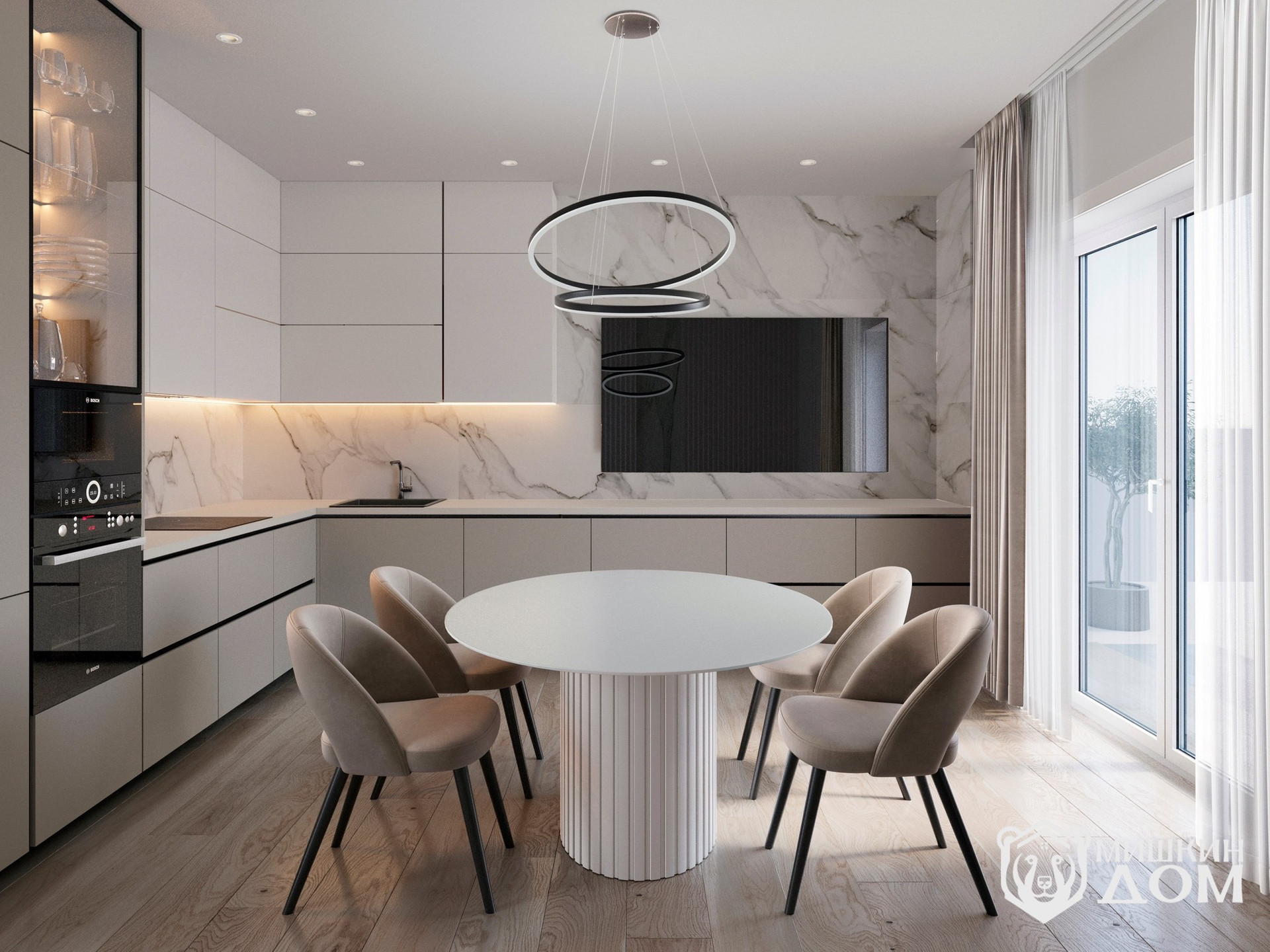 • просторная кухня-гостиная;