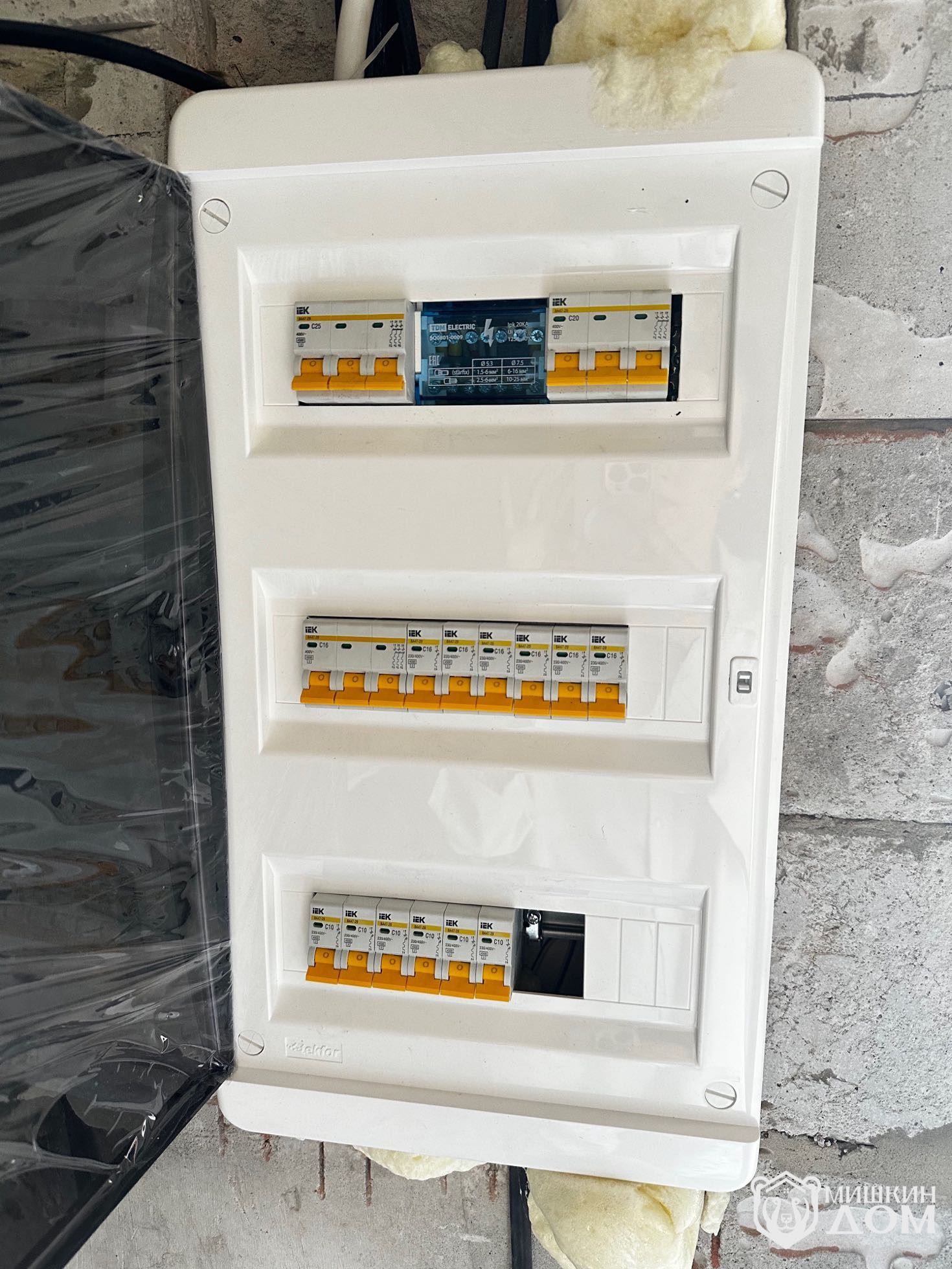 • Инженерные коммуникации – медная ГОСТ электроразводкав гофре по проекту, ввод в дом запроектирован подземным способом через заложенную гильзу и оптико-волокно. Встроенный щиток. По внешнему периметру дома согласно проекта выполнено освещение дома.