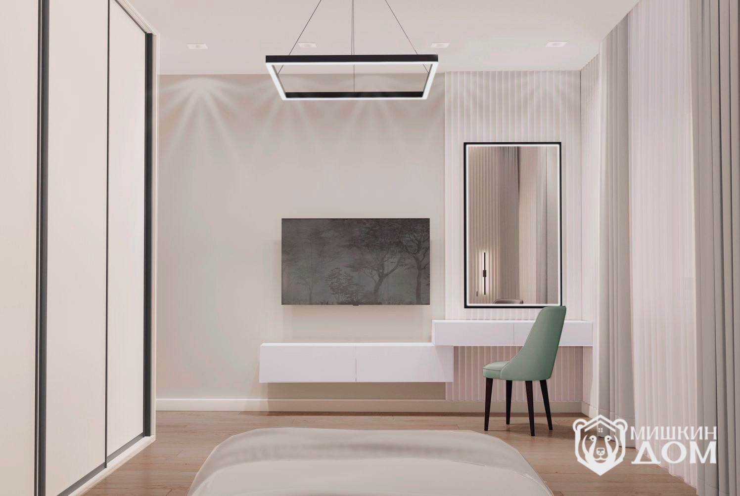 • Выполнен дизайн-проект интерьера и визуализацией всех помещений и расположением мебели, цветового решения и расчётом всех материалов.