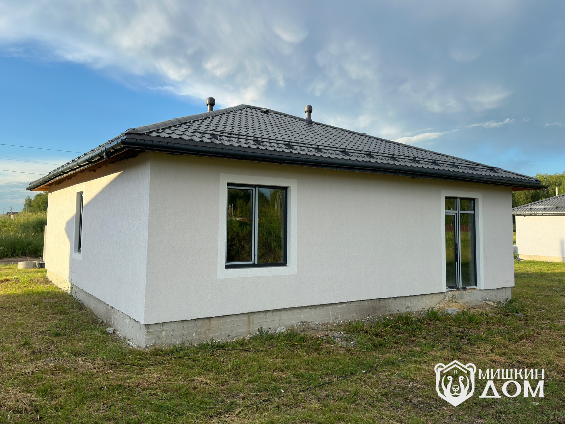 • По периметру дома будет выполнена отмостка и входная группа тротуарной плиткой «Старый город» от Челябинского завода «Урал Камень», Запланирован монтаж забора по периметру и дорогой лицевой зоной в стиле «жалюзи» горизонтальные ламели в тёмно-графитовом цвете согласно проекта. Будет выполнена планировка участка.