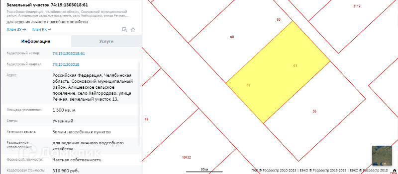 Продам земельный участок, кадастровый номер 74:19:1303018:61, общей площадью 1500 кв. м в с. Кайгородово, улица Речная, земельный участок 13.