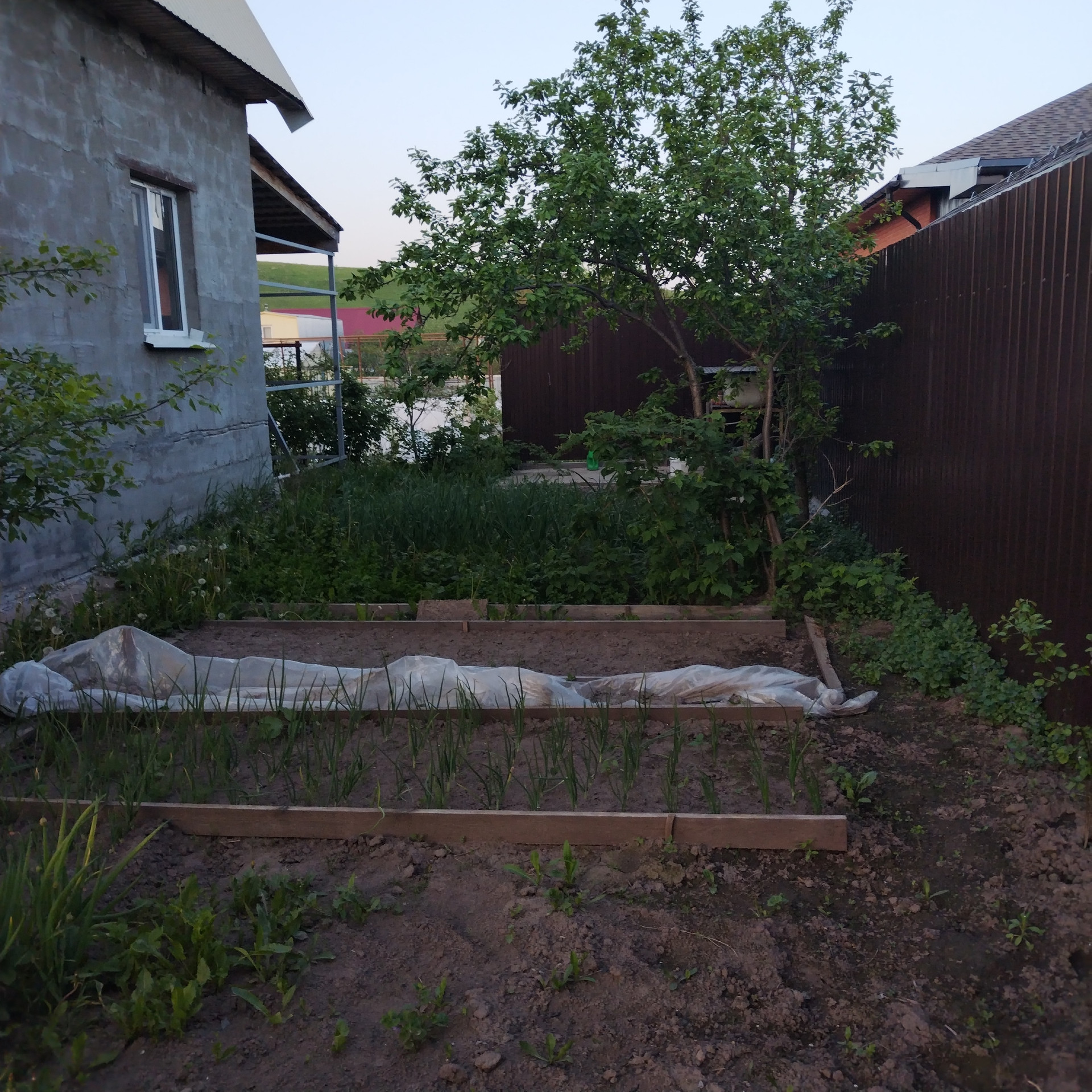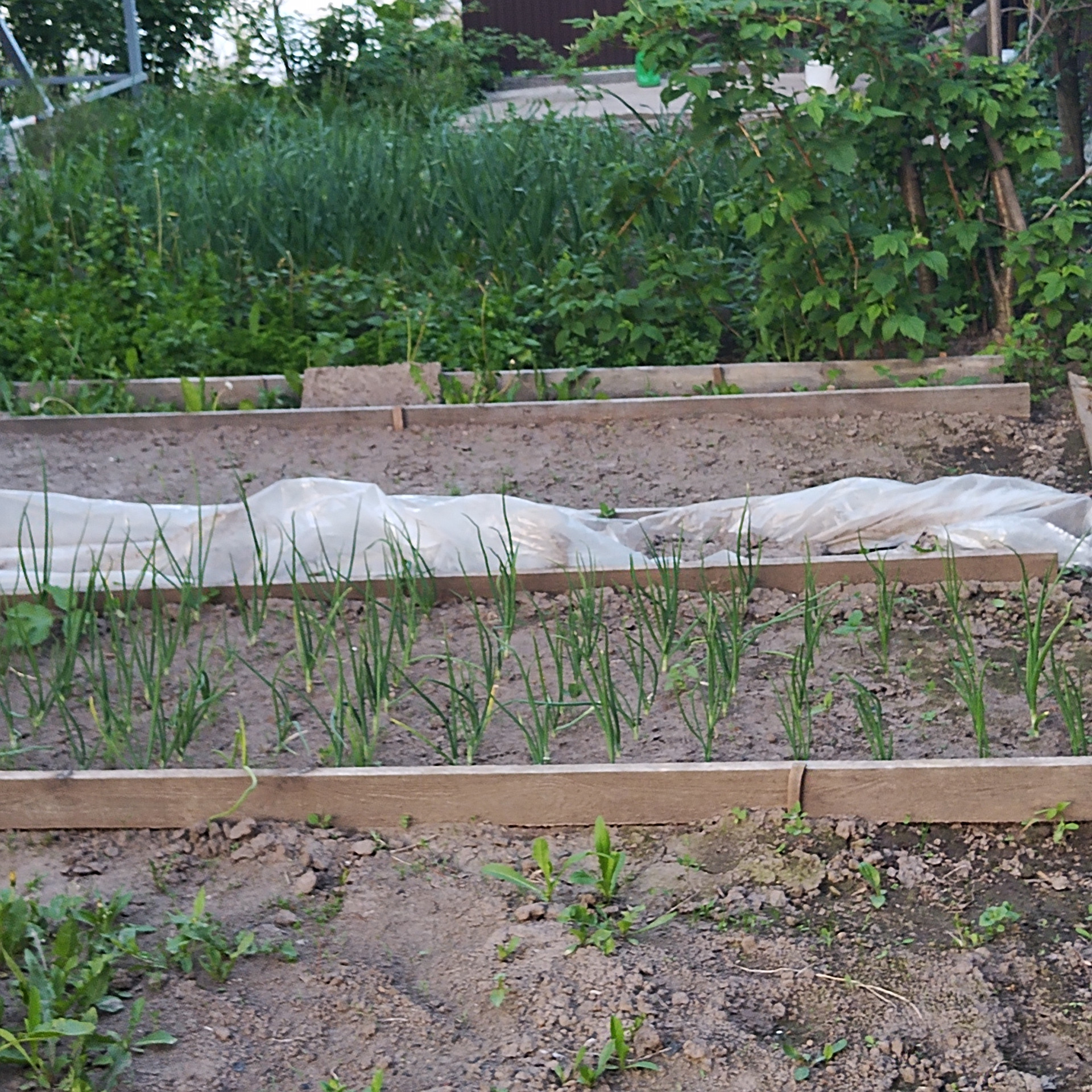 На участке посажены плодовые деревья, саженцы, смородина, крыжовник, вишня, слива, лук, чеснок и много чего.