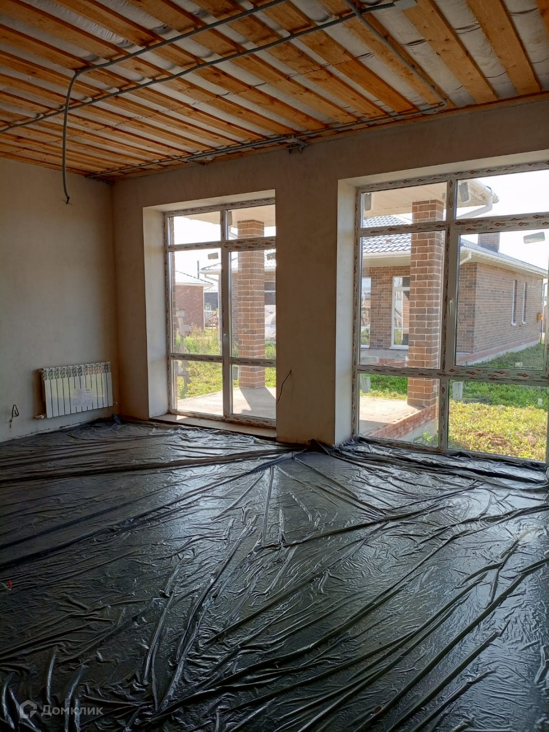 Совмещенная кухня-гостиная 30 кв.м.,  просторные 3 спальни, большие панорамные окна, ПВХ 3-стеклопакет, входная дверь с терморазрывом, 2-контурный газовый котел (всегда есть горячая вода),  установлены теплые полы во всех комнатах, отдельно установлены радиаторы,  выход на террасу предусмотрен, вода скважина,  септик 2 кольца, подъездные пути щебенка.
