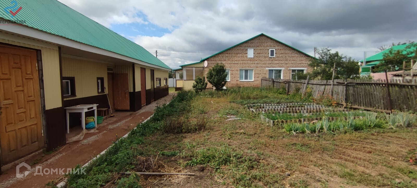 Построен хороший новый хозблок под общей крышей, где гараж, баня на дровах, дровник, сарай. Ухоженный огород с плодовыми насаждениями.