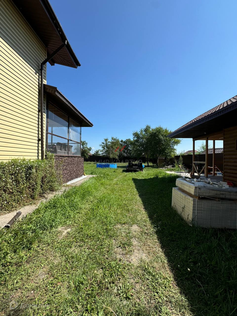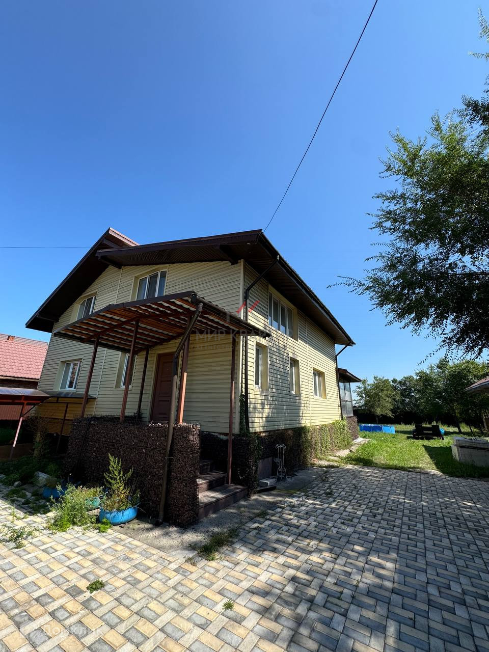 Огромный плюс дома! БАНЯ!!!, с мойкой и парной, навес при въезде на территорию навес под 3 авто, просторная будка для питомца. Есть отличный гараж на 2 машины с навесом при въезде и роль-ворота DoorHan, а также из дома есть дополнительный выход в цокольный этаж, гараж и кочегарку (угольник с доступом засыпки с улицы) скважина и оборудование к ней.