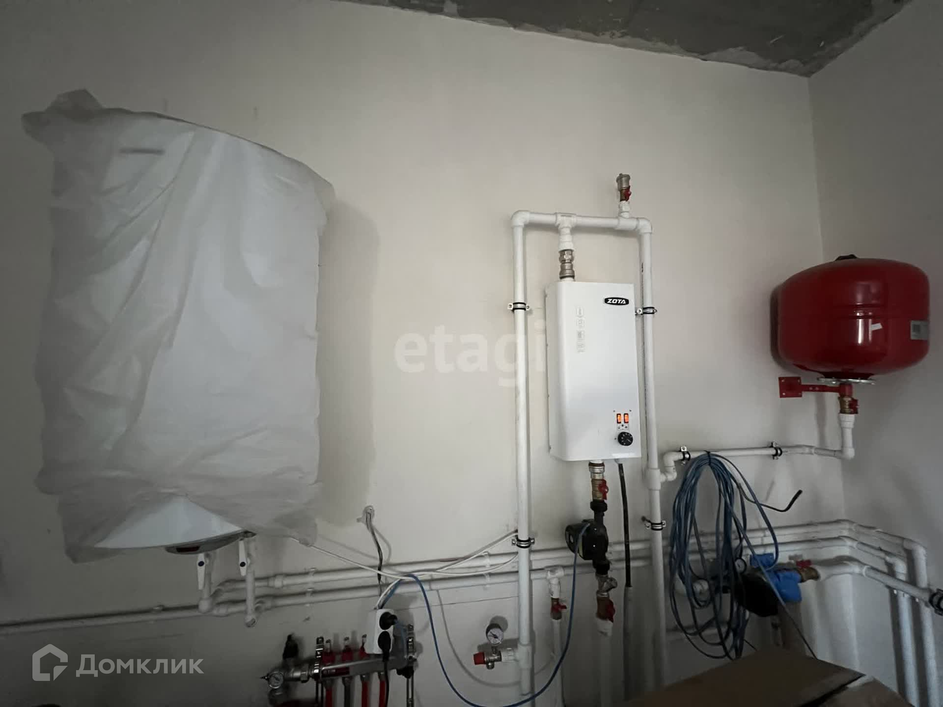 Внутренняя отделка стен - чистовая под обои. Отопление - теплые водяные полы по всему дому, включая гараж. Для комфортной и экономичной регулировки отопления предусмотрено 18 климатических зон. Электрокотел Zоtа 15 кВт.