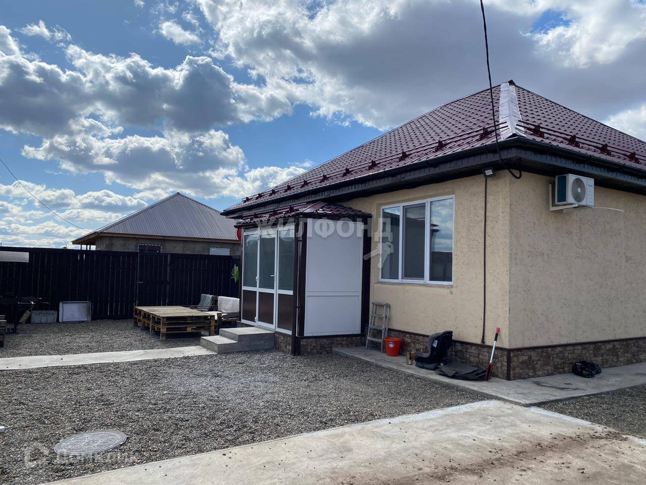Срочно продам за наличный расчет 7 100 000 !! Федеральное агентство недвижимости ЖИЛФОНД предлагает приобрести надежный, очень теплый дом, построенный из арболита +10 соток земли. Участок ровный чистый .В доме все сделано с душой и для себя, заходи и живи, не требует вложений. Дом полностью на электро отоплении, в сильные морозы нагревается до +28 градусов, отопление очень мощное, в полах залит антифриз, установлен глубинный насос, напор воды как в квартире, бойлер 80 л. На улице яркое освещение дома и территории, залита площадка для машины. Забор высотой 2 м. Сделан тамбур, залита дорожка и крыльцо, На крыше дома установлены сливы и снегозадержатели, все выполнено из дорогостоящих и качественных материалов. На улицу выведена вода. Также во всех комнатах установлены приточки воздуха и сделана вентиляция в общей комнате и сан узле. В доме 4 жилые комнаты, сан узел 8 кв.м. Новым владельцам остается кухонный гарнитур без техники, прихожая, кондиционер,стиральная машина. На полах линолеум, возле входной двери кафель как и в сан узле. Стены ровные, высота потолков 2,8. На участке есть вольер, мангал и зона для летнего отдыха. До детского сада Калинка 5 минут езды, недалеко расположена автобусная остановка, все соседи хорошие. Документы готовы к сделке. Менее пяти лет ( в ипотеку цена другая). Возможен обмен на вашу недвижимость.