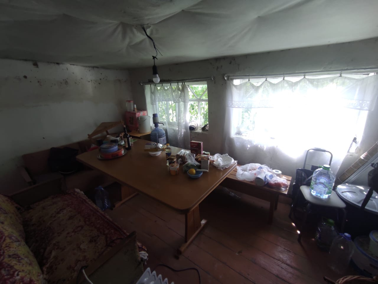 Все коммуникации, подведен газ, установлена газовая горелка, отопление центральная печь, все счетчики в наличии, электропроводка вся поменяна, водопровод пластик, окна все новые ПВХ, 2 ямы септик, перестелены полы, частично отделаны стены, большое количество пристроек и большой подвал.