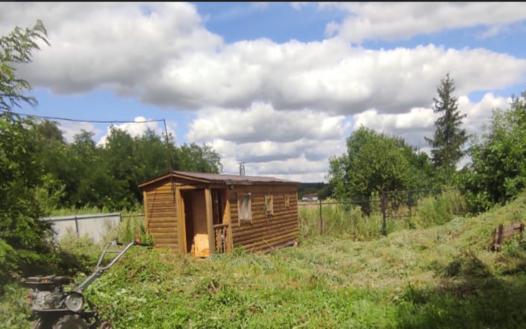 Хорошим бонусом является только отстроенная деревянная банька на дровах, уже опробованная в деле. ✔Класс!✔ Вода к бане подведена.