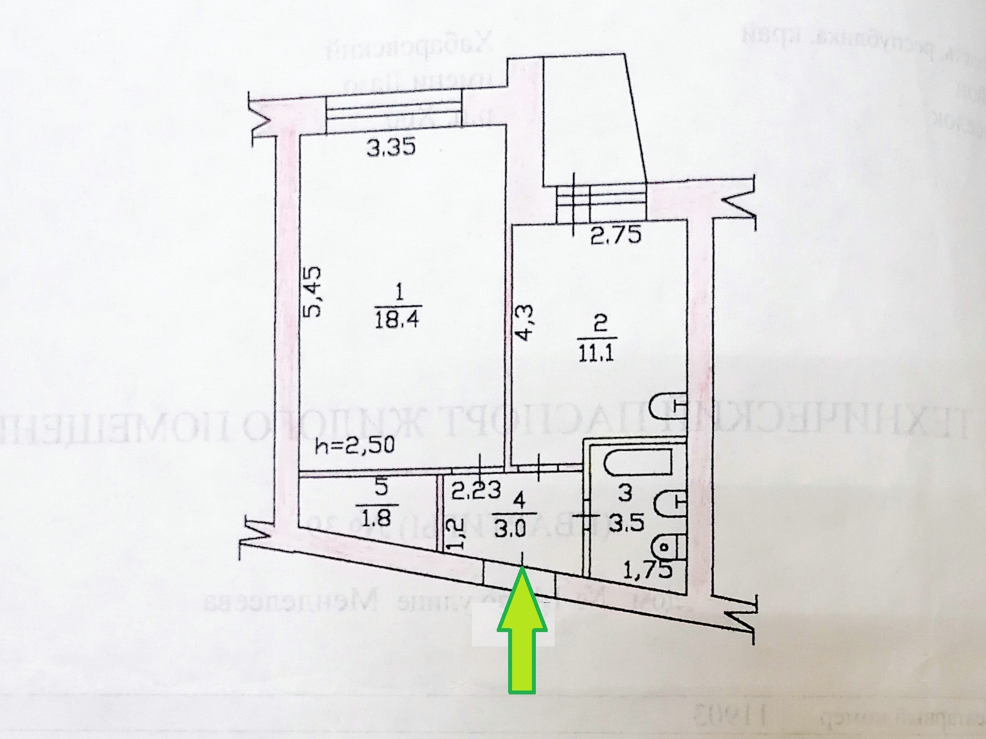Высота потолков 2.5 м
