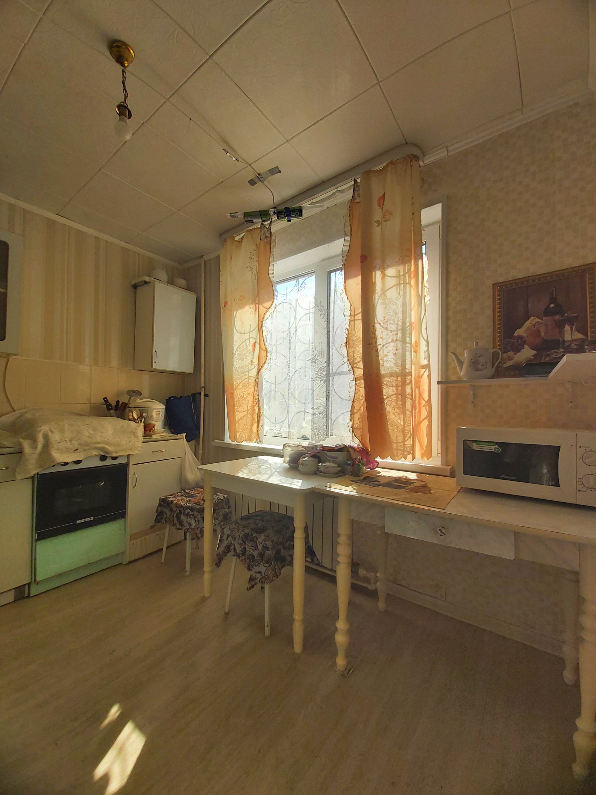 Квартира солнечная, уютная и чистая общей площадью 32,4 кв.м. в хорошем жилом состоянии: установлена качественная входная дверь, окна ПВХ, полы - линолеум, металлические радиаторы, остаётся кухонный гарнитур с электроплитой. Санузел совмещённый. Окна выходят во двор. Без балкона