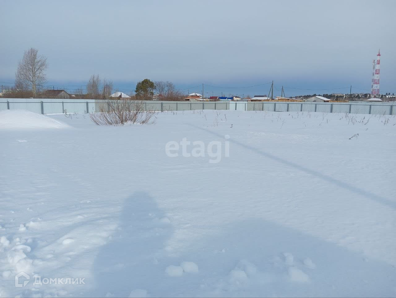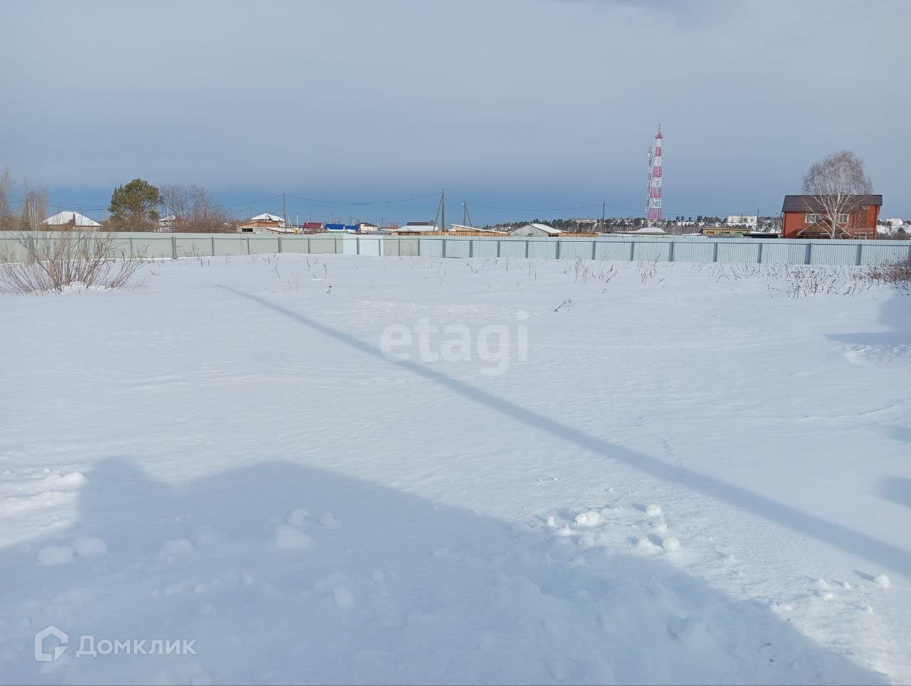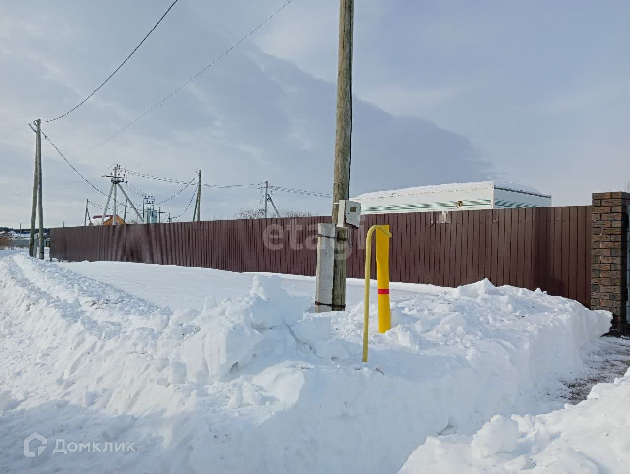 ✅ Участок огорожен забором из профнастила (цвет шоколад).