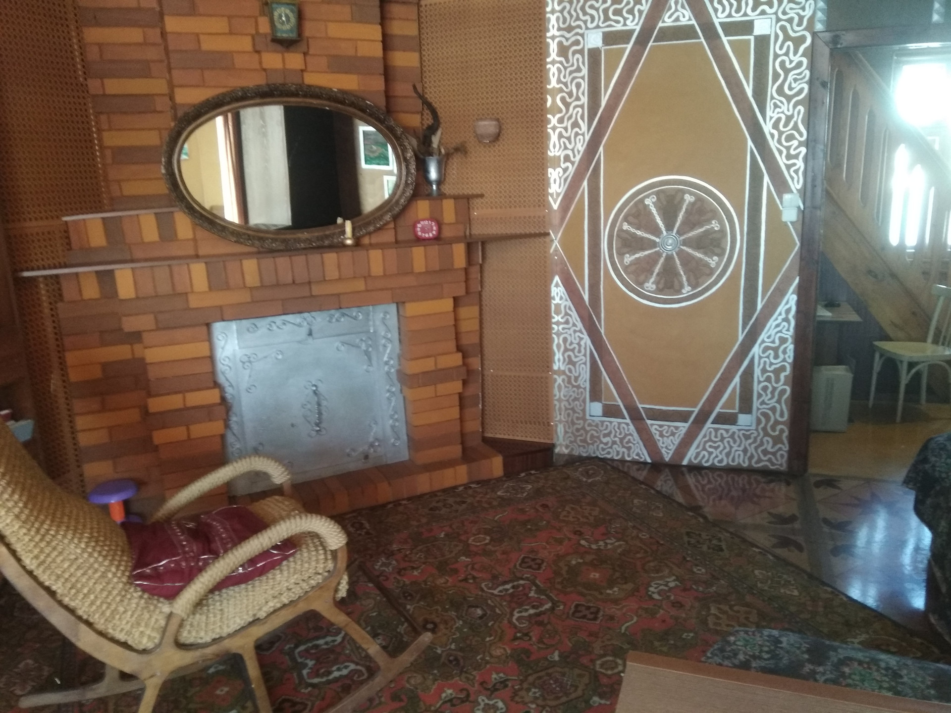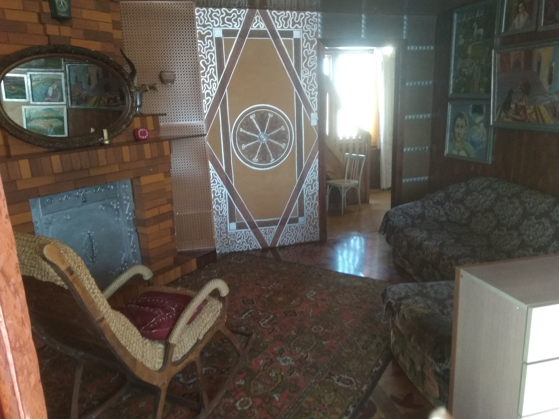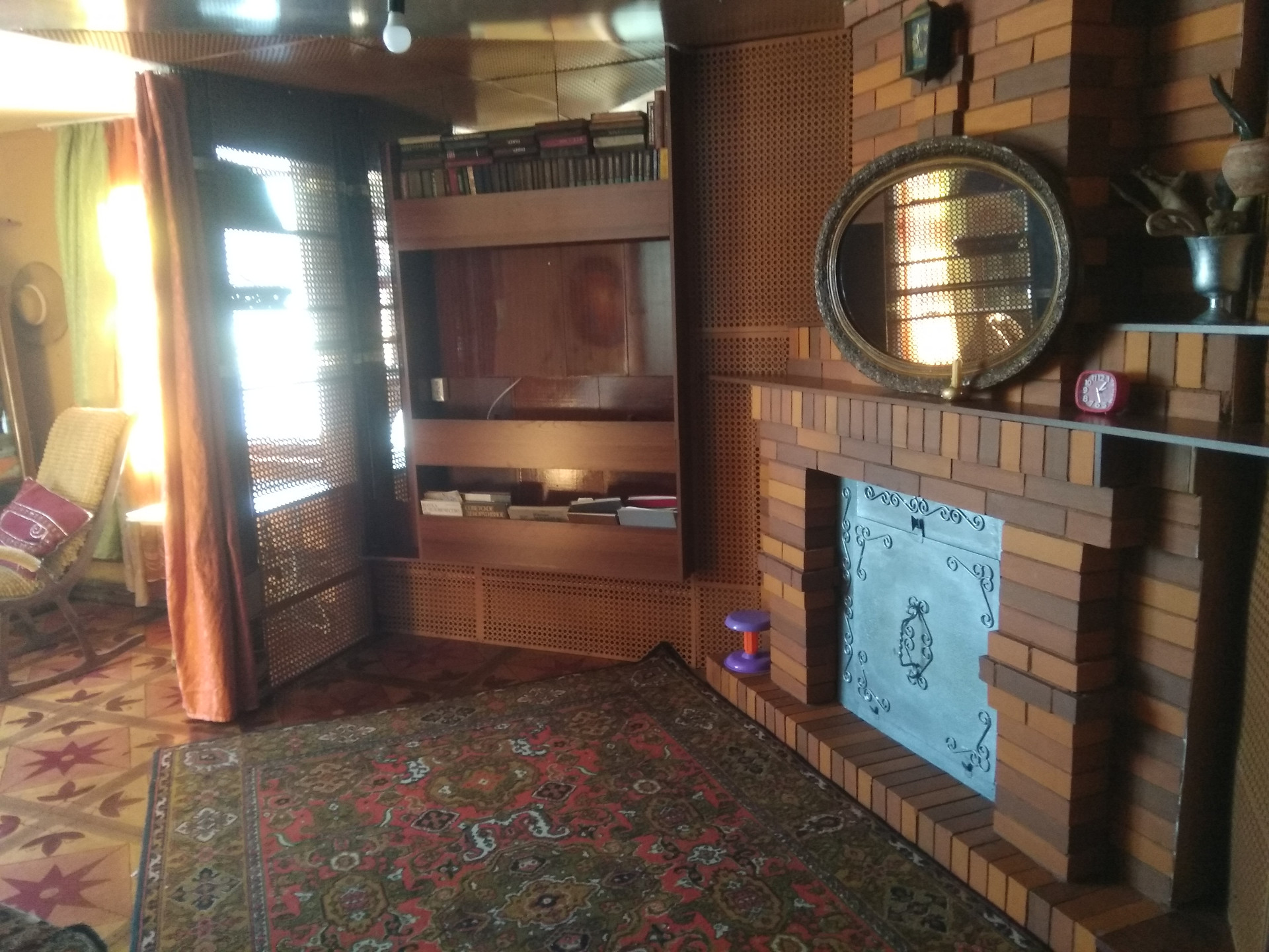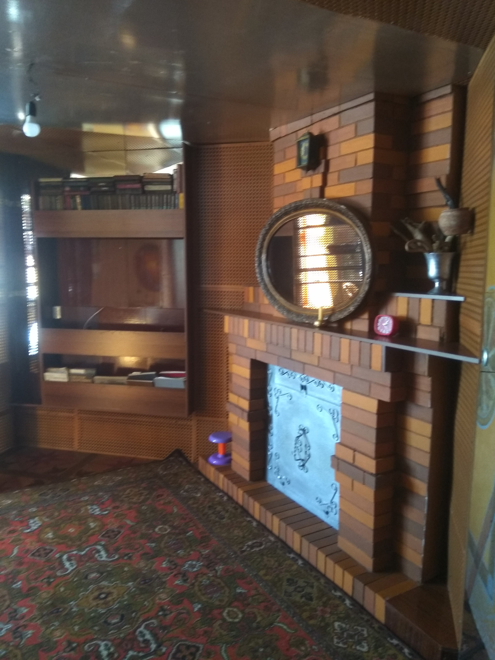 Просторный зал с действующим камином.