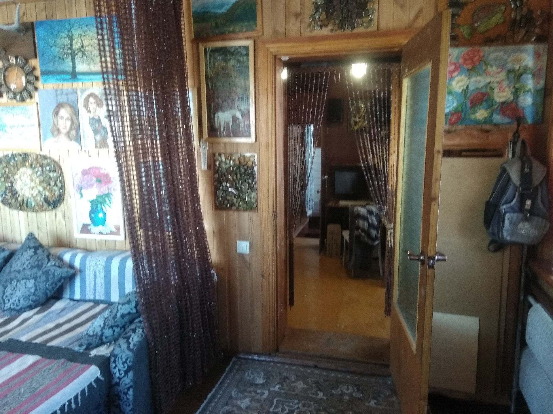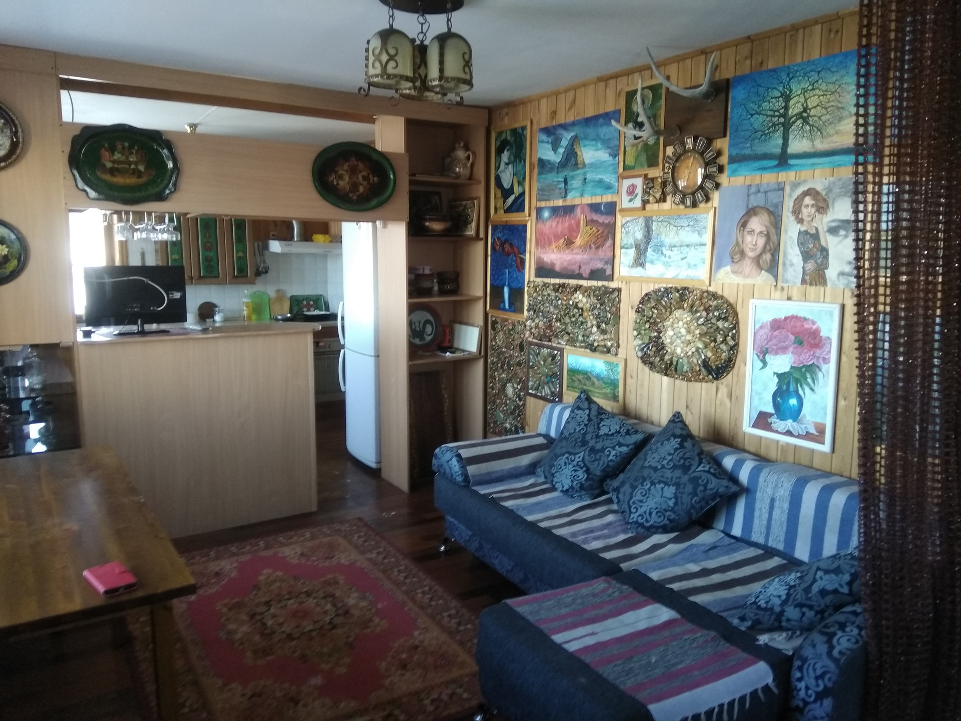 Просторная прихожая-столовая, отделена от кухни бар стойкой.