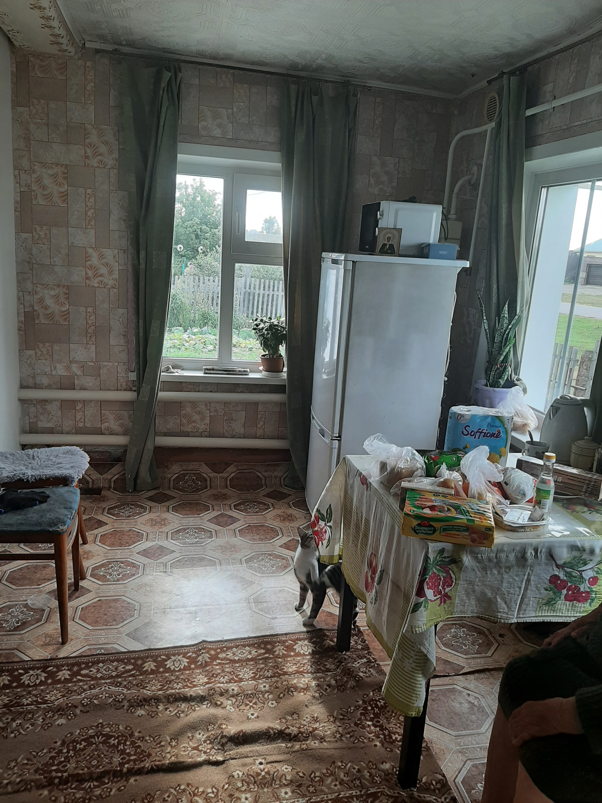 Благоустроеный дом с газом, канализация и водоснабжением. Оставляем всю мебель и технику по требонию. Имеются дворовые постройки, сарай и баня. В доме одна комната и кухня прихожая, а также совмещённый санузел и кладовая. Два больших погреба, один на улице и один дома. Заходи и живи! Дом очень тёплый и светлый. В посёлке есть магазины, аптеки, школа и детский сад.
