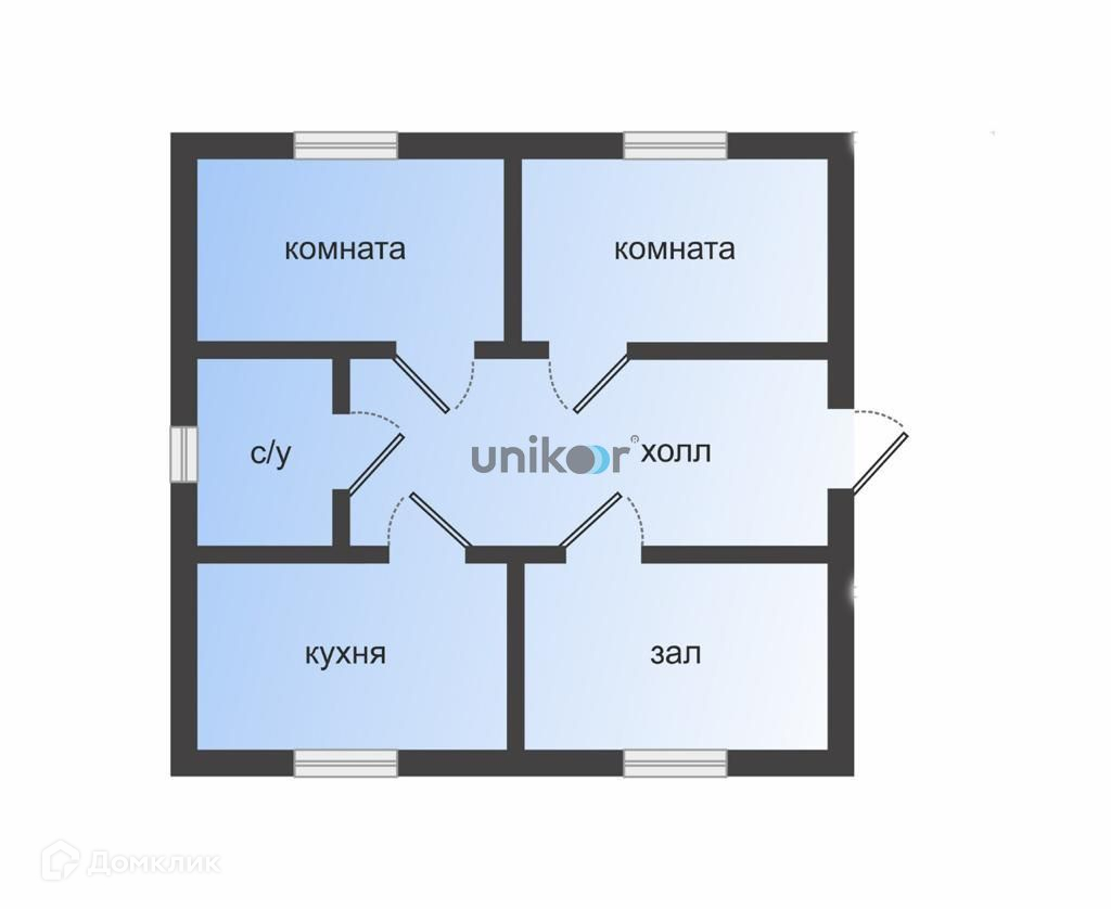 Удобная планировка: Подходит для большой и дружной семьи. Три спальные комнаты, кухня-студия с выходом на террасу, санузел.