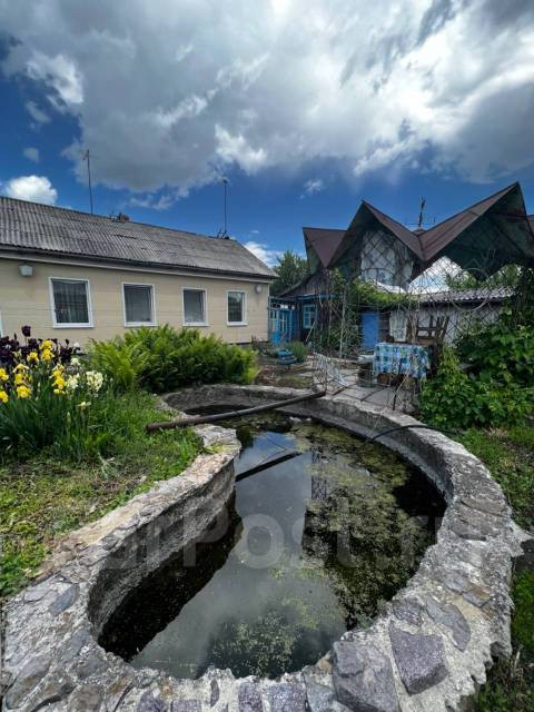 На территории участка расположены хозяйственные постройки: летняя кухня, беседка, душ. Также на участке располагается искусственный пруд.