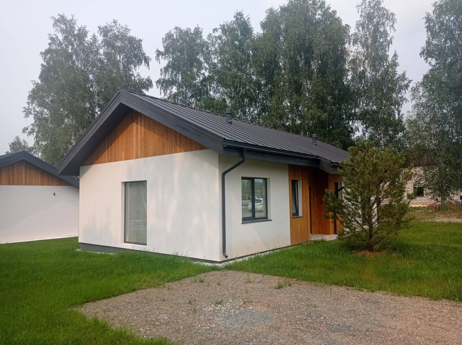 -Фасад: декоративная штукатурка, деревянные вставки