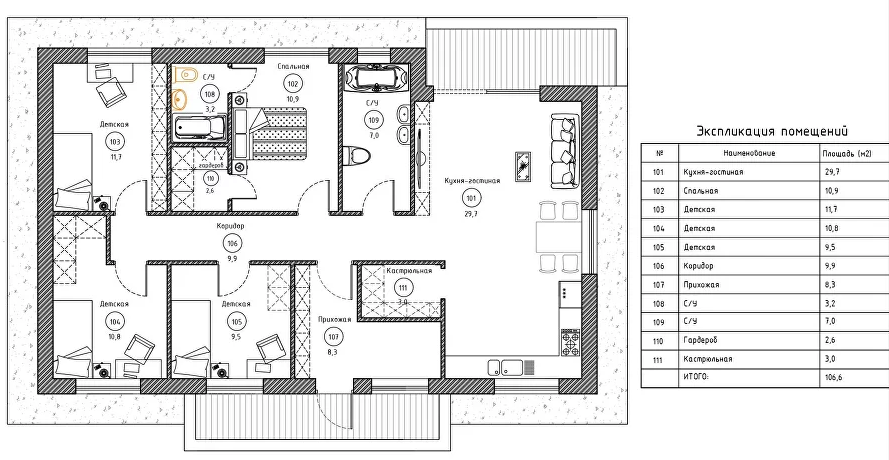 -Кровля: металлическая с водосточной системой