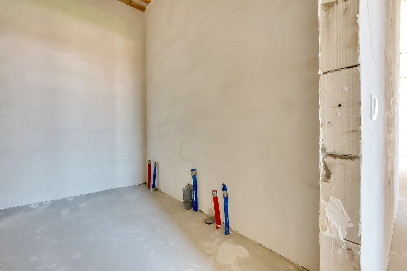 -Пол залит под чистовую отделку (стяжка)