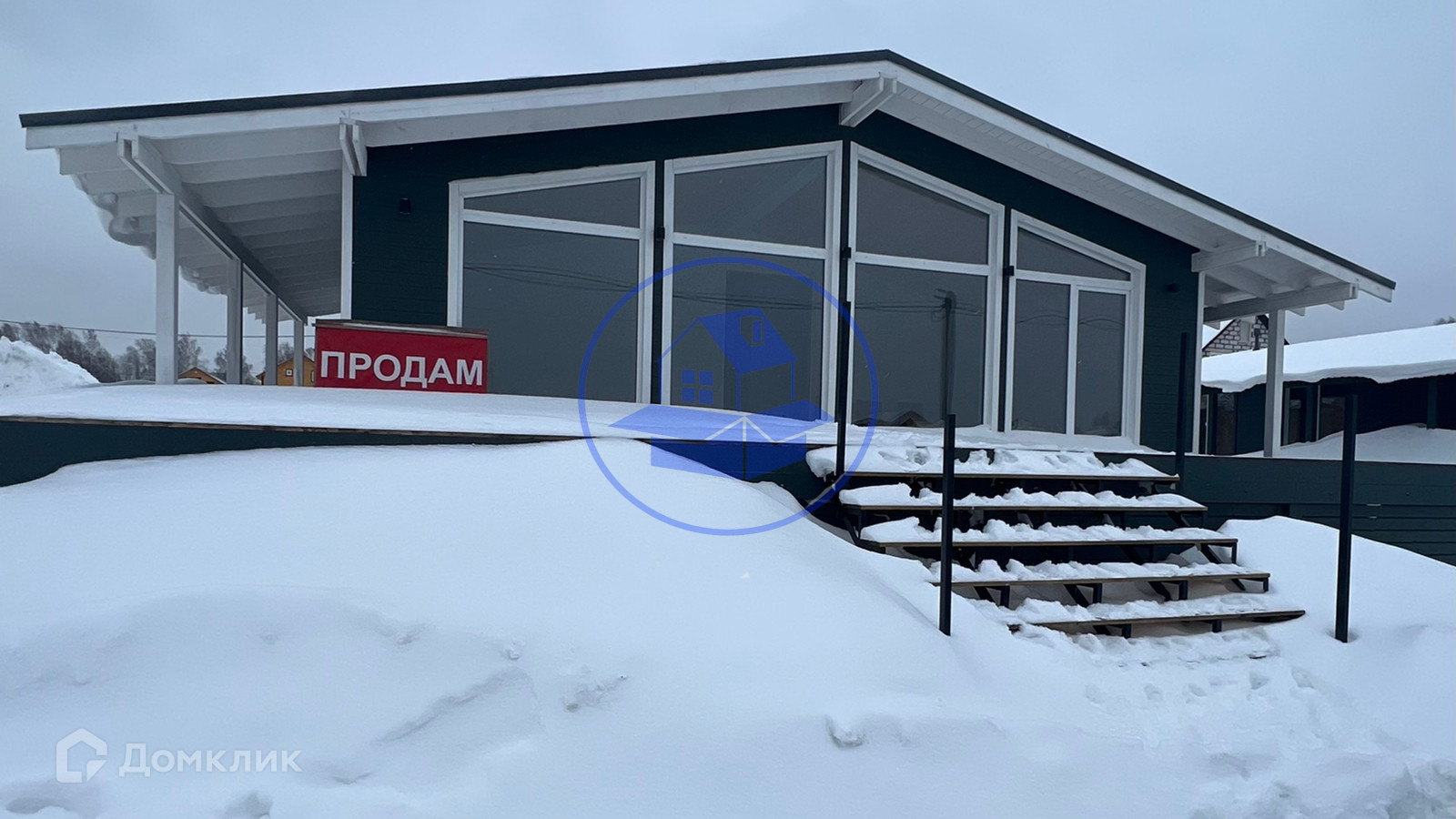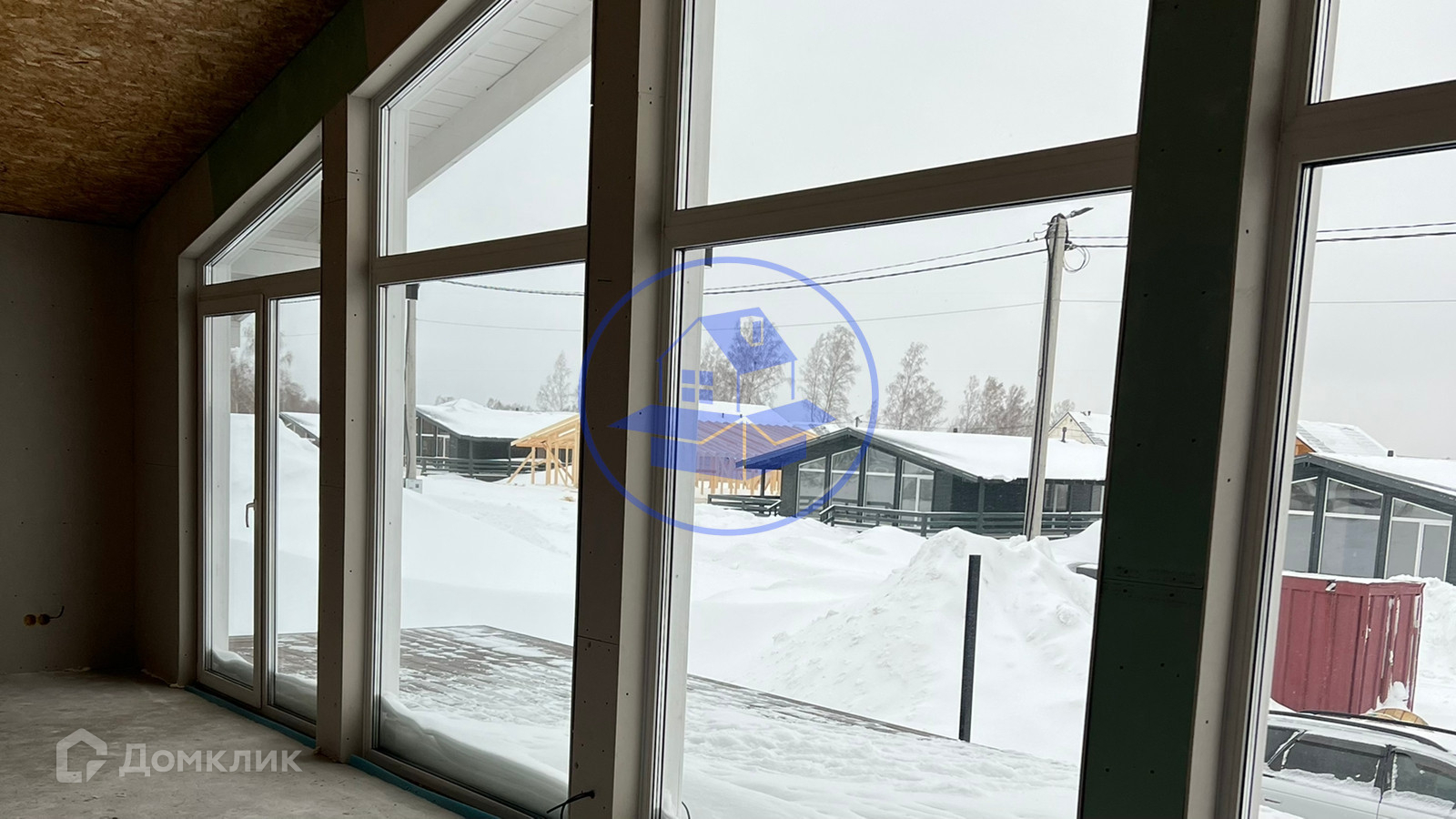 Дом с большими панорамными окнами в пол.